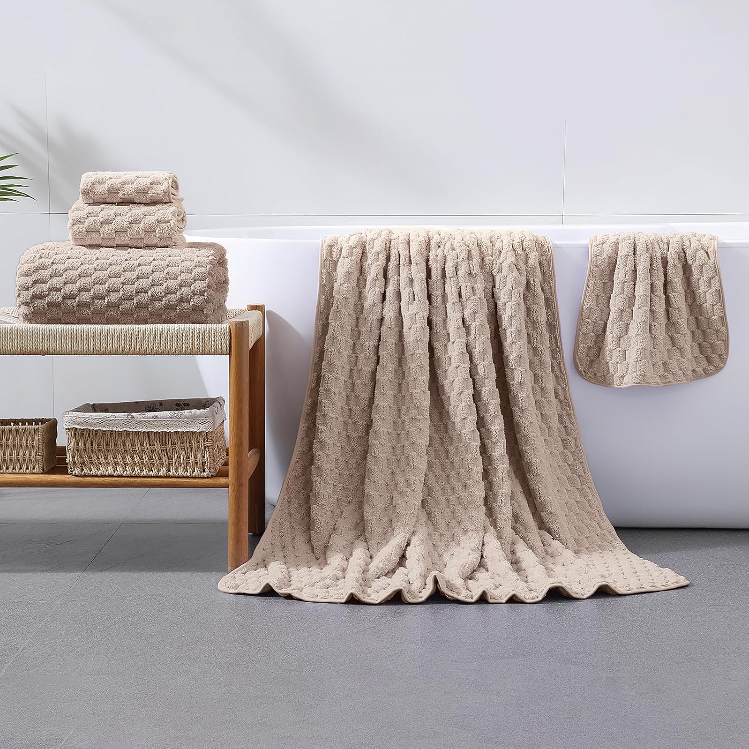 - HIGH WATER ABSORPTION: This microfiber bath towel features a fluffy checkered pattern design, offering super absorption and quick-drying performance. It can hold up to 12 times its weight in water, quickly wicking moisture from your body. Enjoy a luxurious and cozy experience after every bath