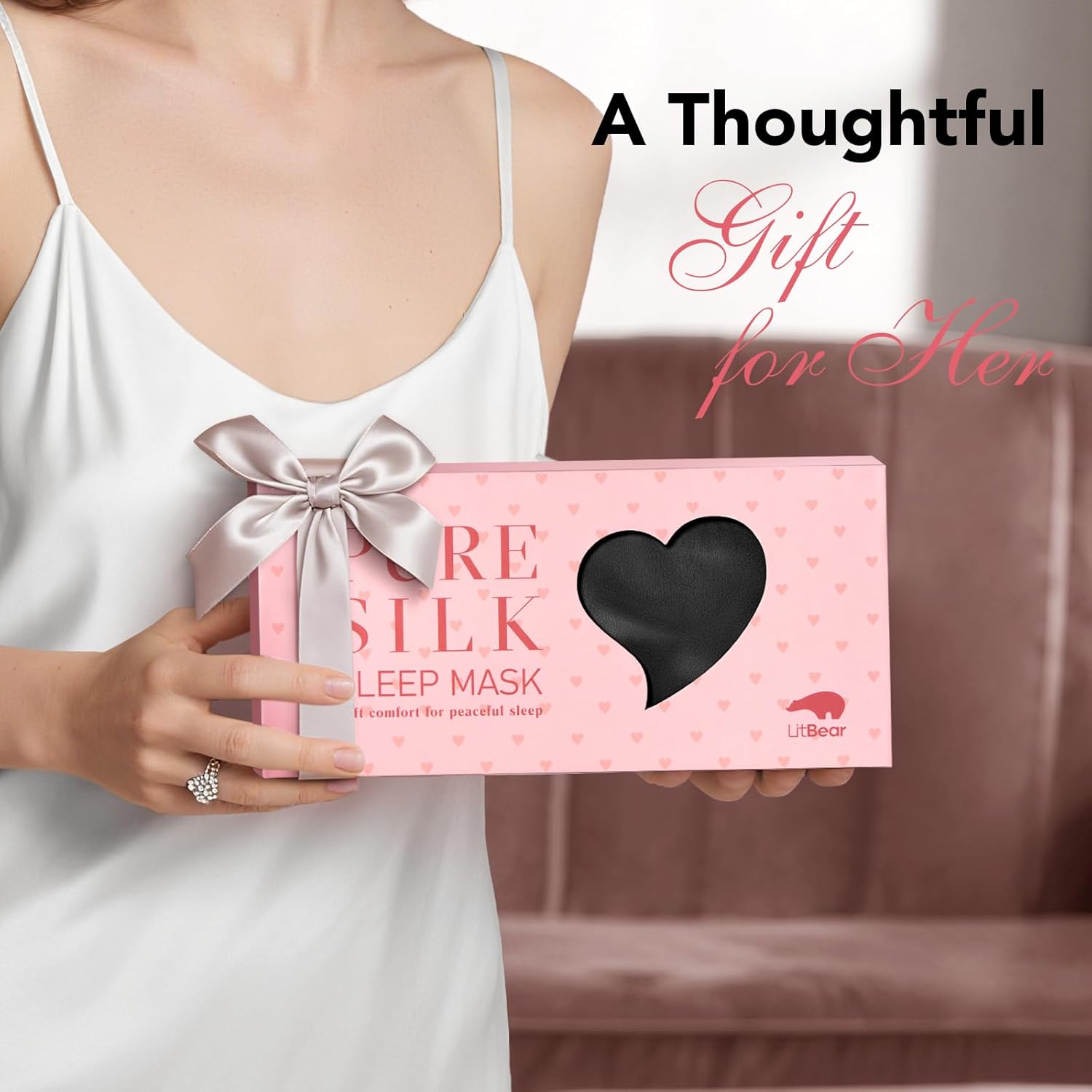 - Perfect Present Set: LitBear silk sleep mask for women and men comes in a beautifully packaged gift box with a travel-friendly pouch and a silk scrunchie. Ideal for gifting or personal use, the pouch makes it easy to carry and keep your mask safe while traveling