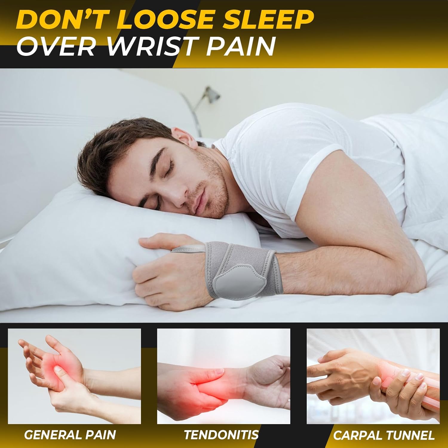 NeoTech Care Wrist Band - Elastic & Breathable Fabric - Adjustable Compression Strap - Men, Women, Right or Left - Support Wrap for Protection or Sports (Gray Color, Size S, 1 Pair)