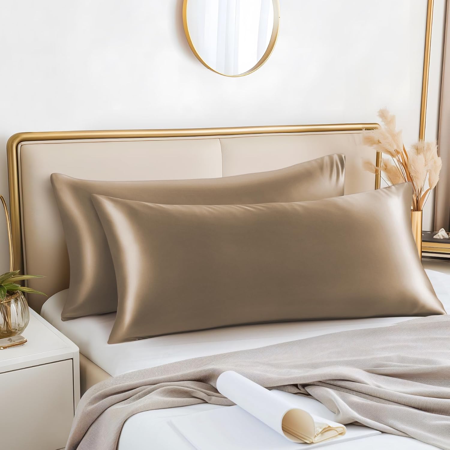 BEDELITE Satin Body Pillow Cover 2 Pack, Super Soft and Cooling Body Pillow Pillowcase for Hair and Skin, Breathable Silky Full Long Pillowcase Cover(20"x54", Tawny Brown)