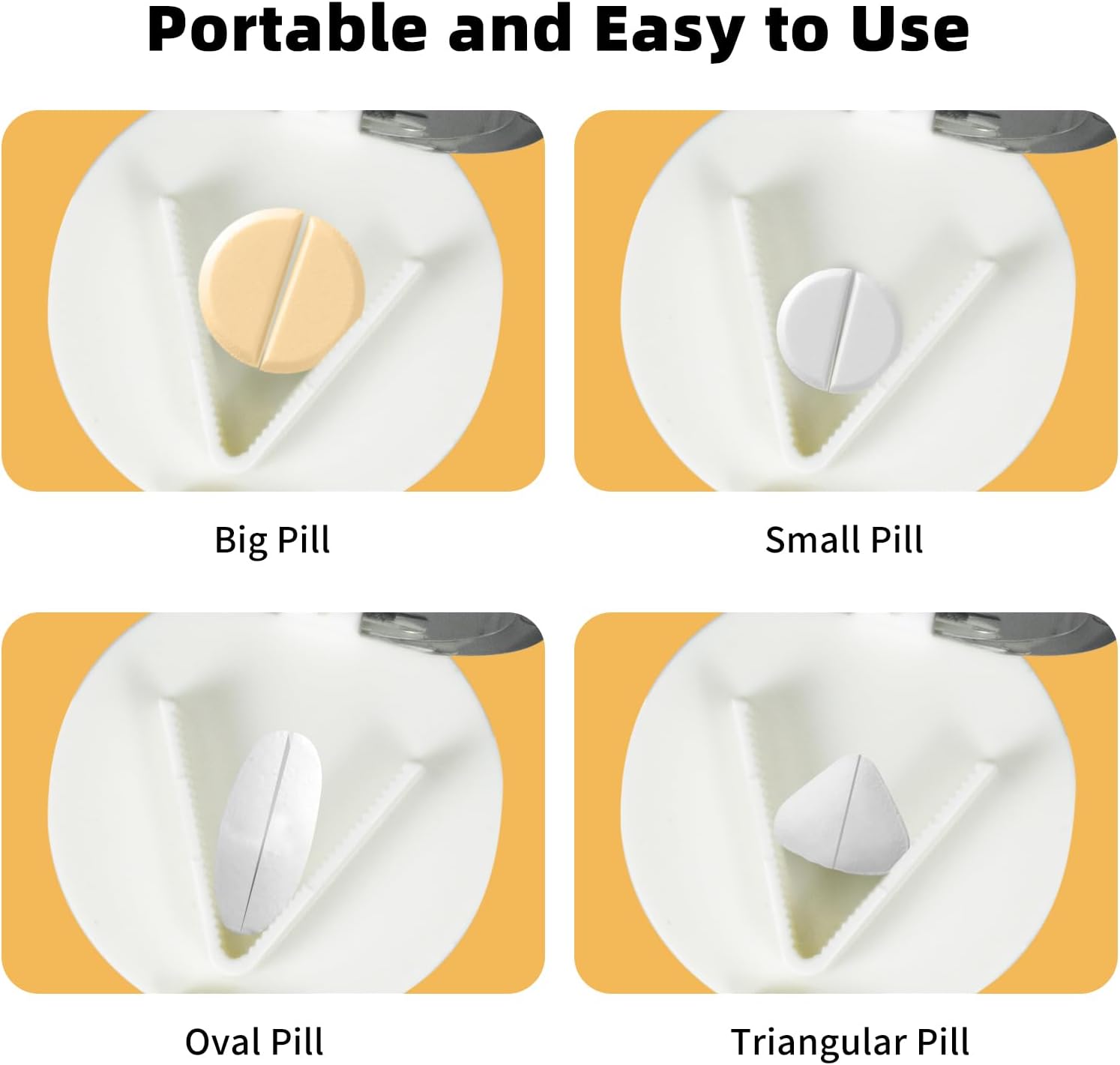 - 【Precise Cutting】This pill breaker slicer is suitable for all kinds of pills,equipped with stainless steel blades, pill splitter firmly grips pills for easy accurate cutting pills into 1/2, 1/4, or 1/8., accurately cut the pills and keep sharp after repeated use. [Tips: Built-in blade, please keep it out of the reach of children]