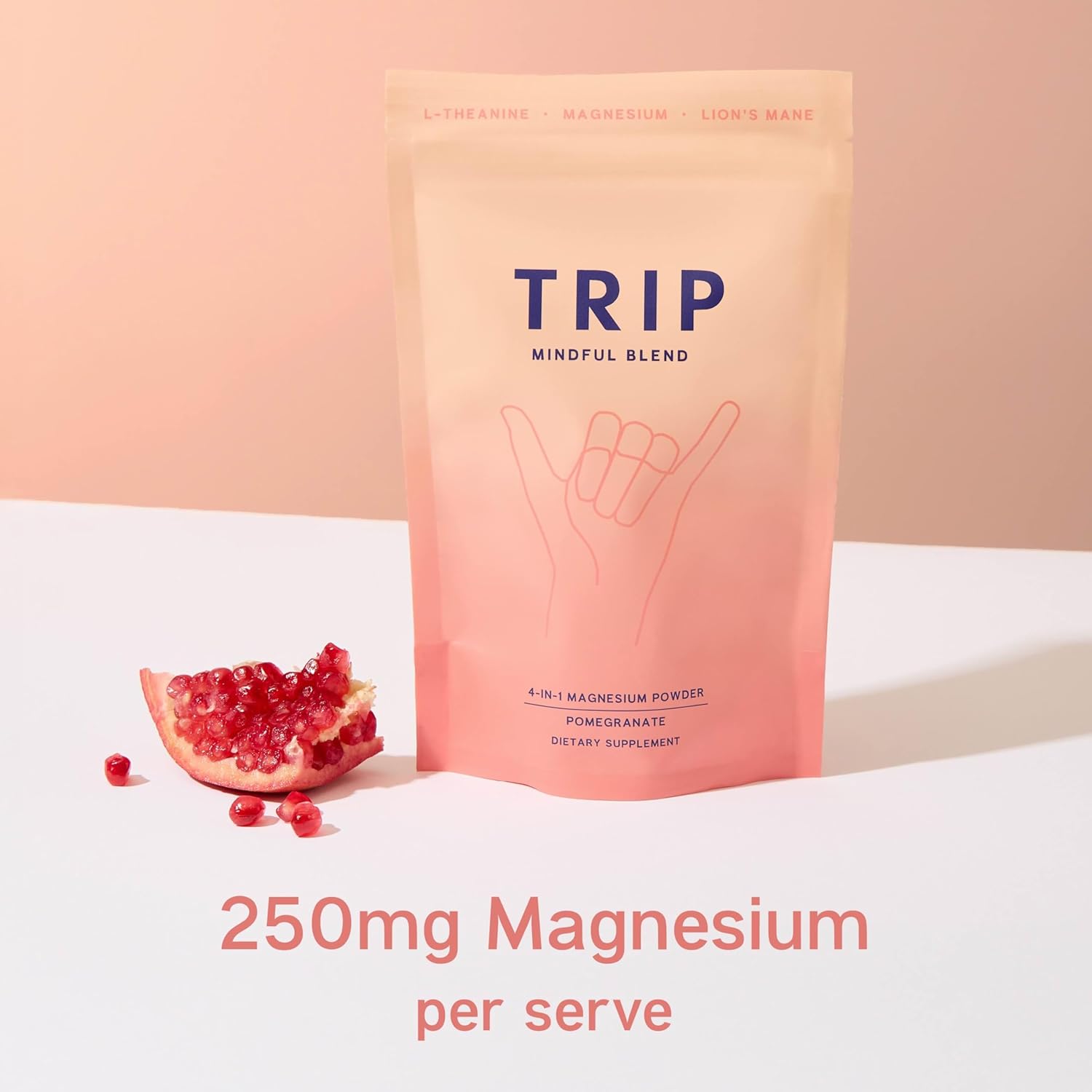 - POMEGRANATE ORANGE BLOSSOM FLAVOR: TRIP Magnesium Powder offers a refreshing blend of pomegranate and orange blossom flavors, creating a delicious drink experience. Infused with L-theanine and Lion’s Mane, this sugar free formula makes it easy to enjoy anytime as part of your daily routine to help you unwind or chill out. Simply scoop, shake, sip, and enjoy.