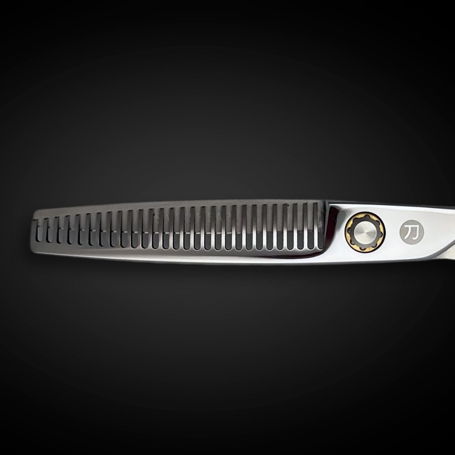 Professional Hair Cutting Scissors - 6 or 7 Inch Sizes - Convex Blade - Japanese 440C Stainless Steel - For Wet or Dry Cutting - Saki Shears Musashi For Hairdressers and Barbers (Thinning 6 Inches)