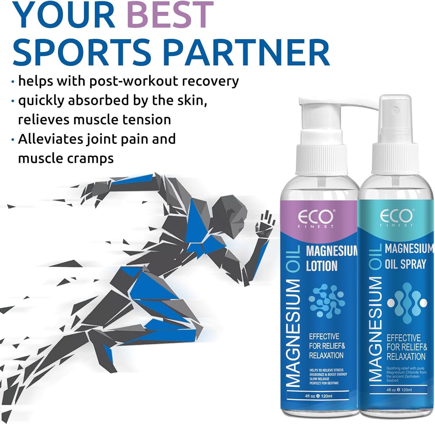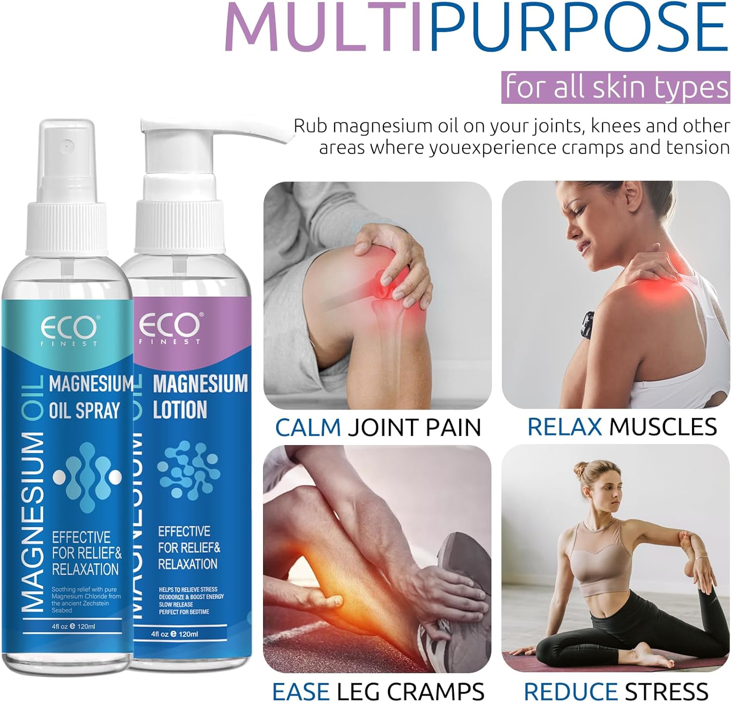 Pure Magnesium Oil Spray & Lotion Duo, Topical Magnesium Oil Lotion for Feet, Skin & Body, Easy to Absorb and Use, Women & Men