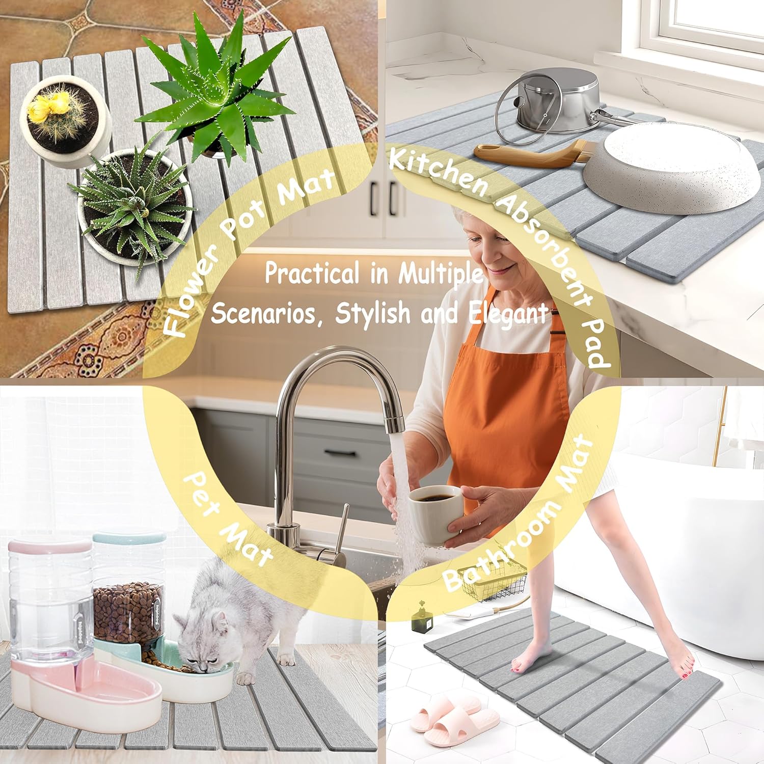 - Versatile Multi - Purpose Use: Beyond a dish drying stone mat, use this mat as a heat-resistant trivet, chic pet feeder, plant saucer, or bath accessory. Its sleek light gray finish blends with any decor while delivering endless utility throughout your home