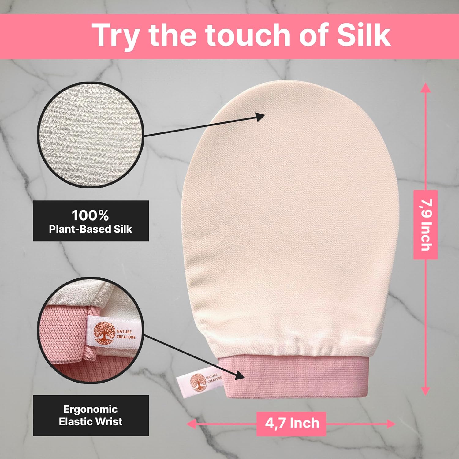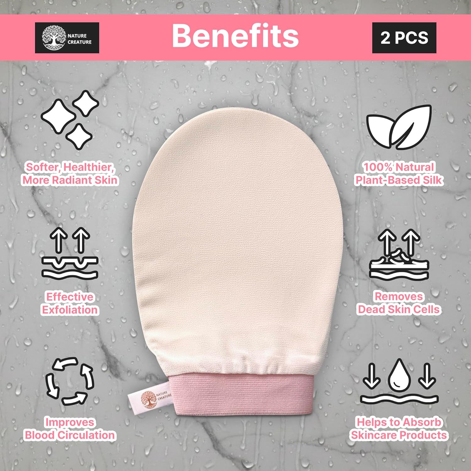 – Vegan Silk Exfoliating Glove (2pcs) for Face, Body, and Hands | Natural Body Scrubber for Dead Skin Removal | Exfoliating Mitt Eco-Friendly, Perfect for Spa, Bath, and Shower