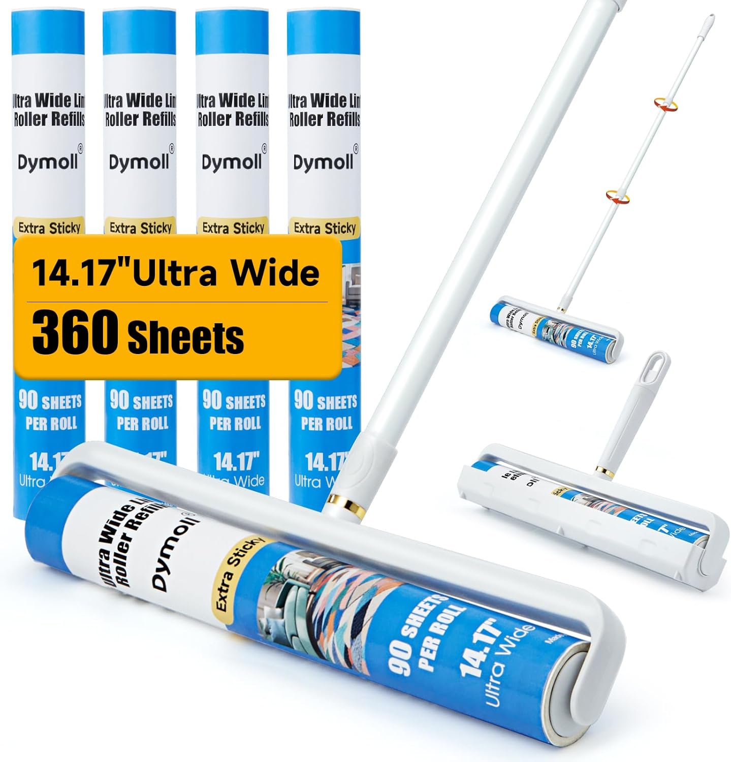 14.17" Large Lint Rollers for Pet Hair Extra Sticky, 360 Sheets Roller with Long Handle for Cleaning Carpets, Clothing, Couch, Furniture Wall Cleaner Mop Dust Remover