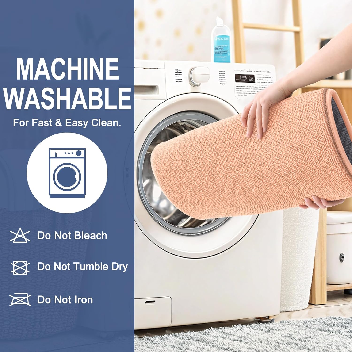 - [Easy to Clean & Care] Our bathroom mats are machine washable. Simply place the mats in the washer using cold water on the gentle cycle. Do not use chlorine or bleach. Tumble dry on low heat or lay to air dry. The color of the bath mats will not fade.
