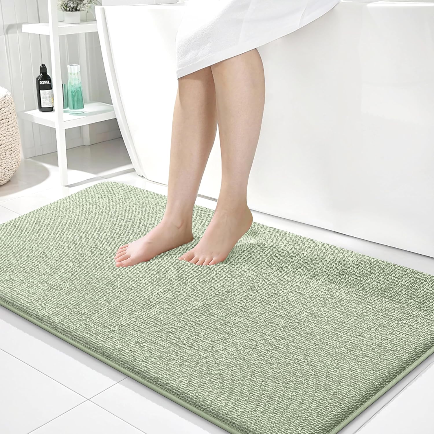 OLANLY Thick Memory Foam Bath Mat Rug 44x24, Extra Soft Absorbent Bathroom Rug, Quick Dry Bath Mats, Non-Slip, Machine Washable Carpet for Bathroom, Tub and Shower, Home Decor Accessories, Sage Green