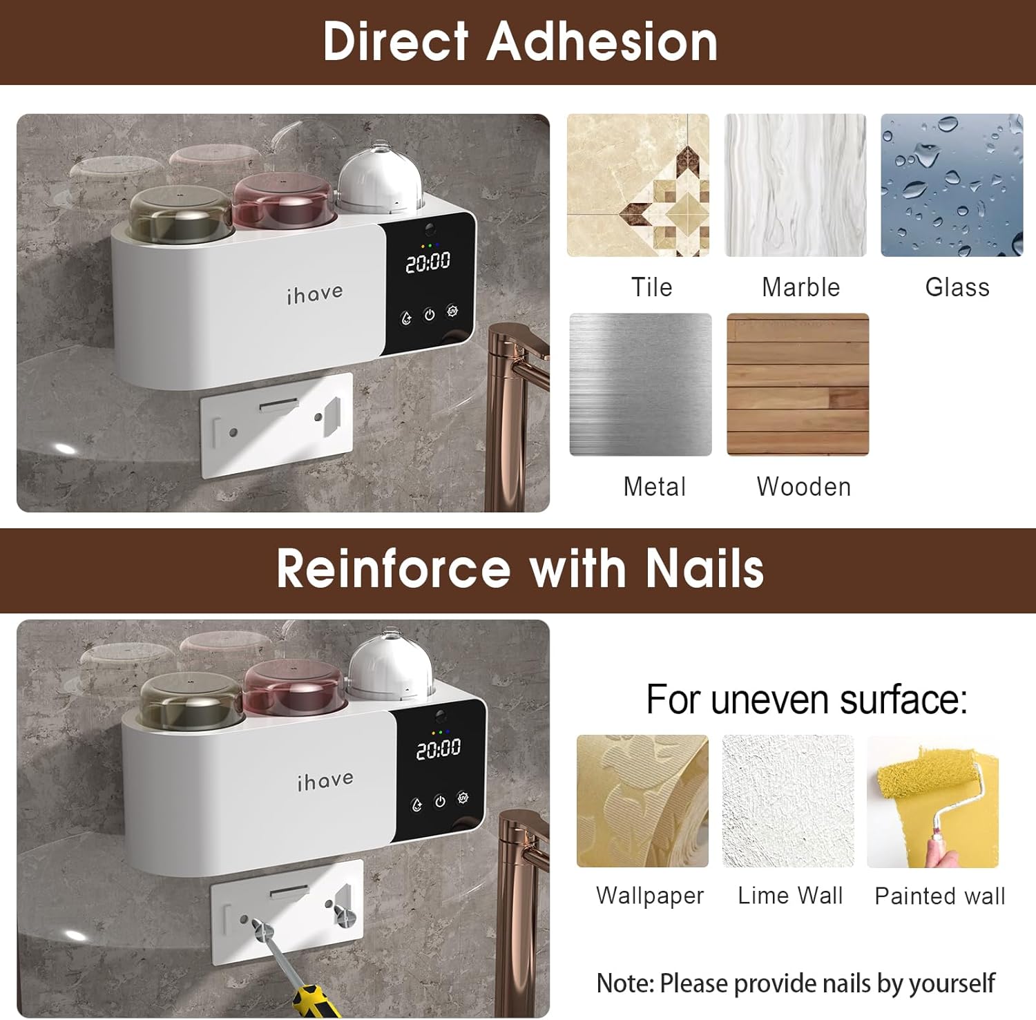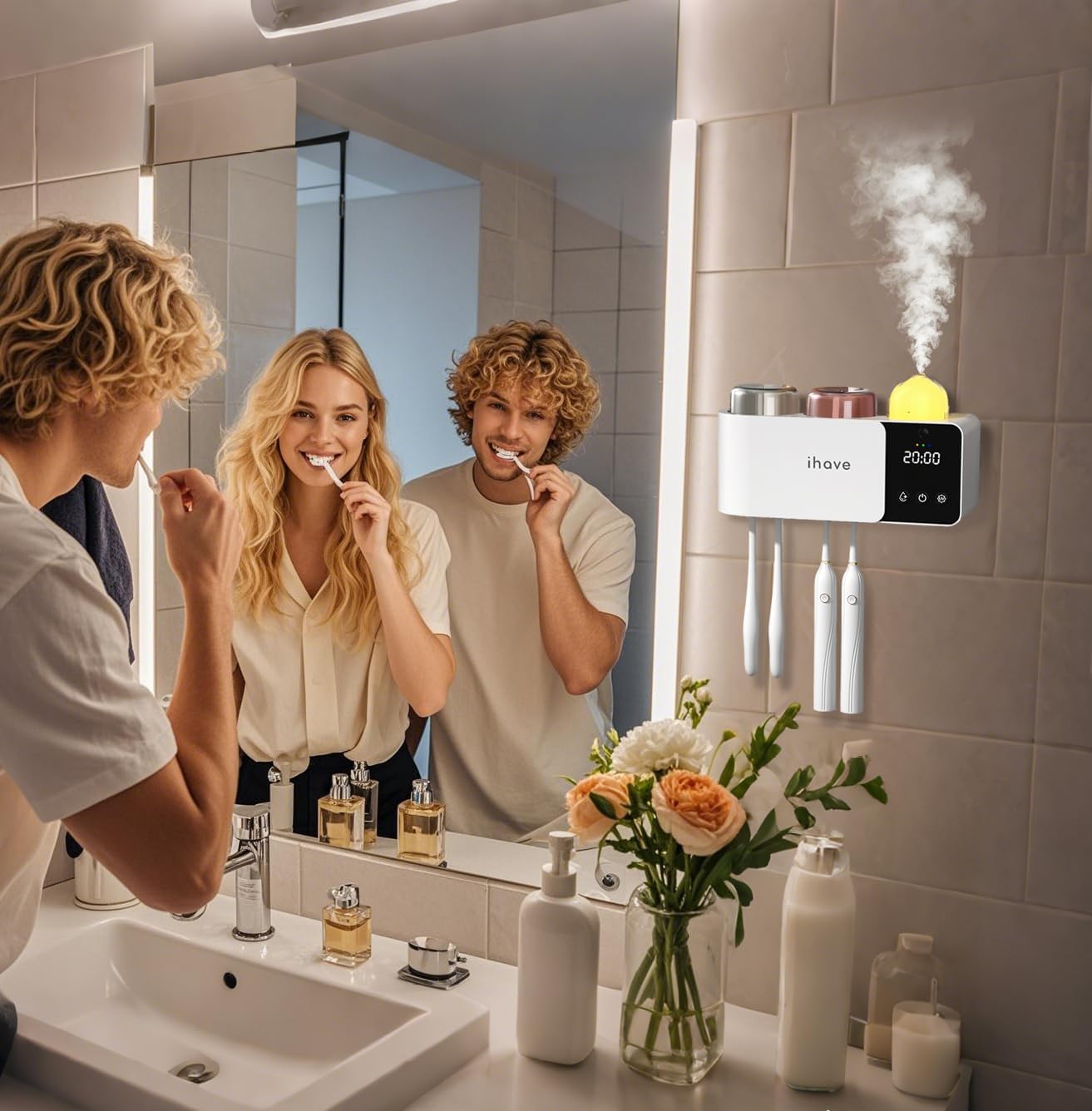 iHave Toothbrush Holders with UV Toothbrush Sanitizer, Aromatherapy Diffuser & IR Night Light - 4-Hour Smart Cruise Disinfection, Auxiliary Combo Drying - Wall-Mounted Bathroom Organizer with 2 Cups