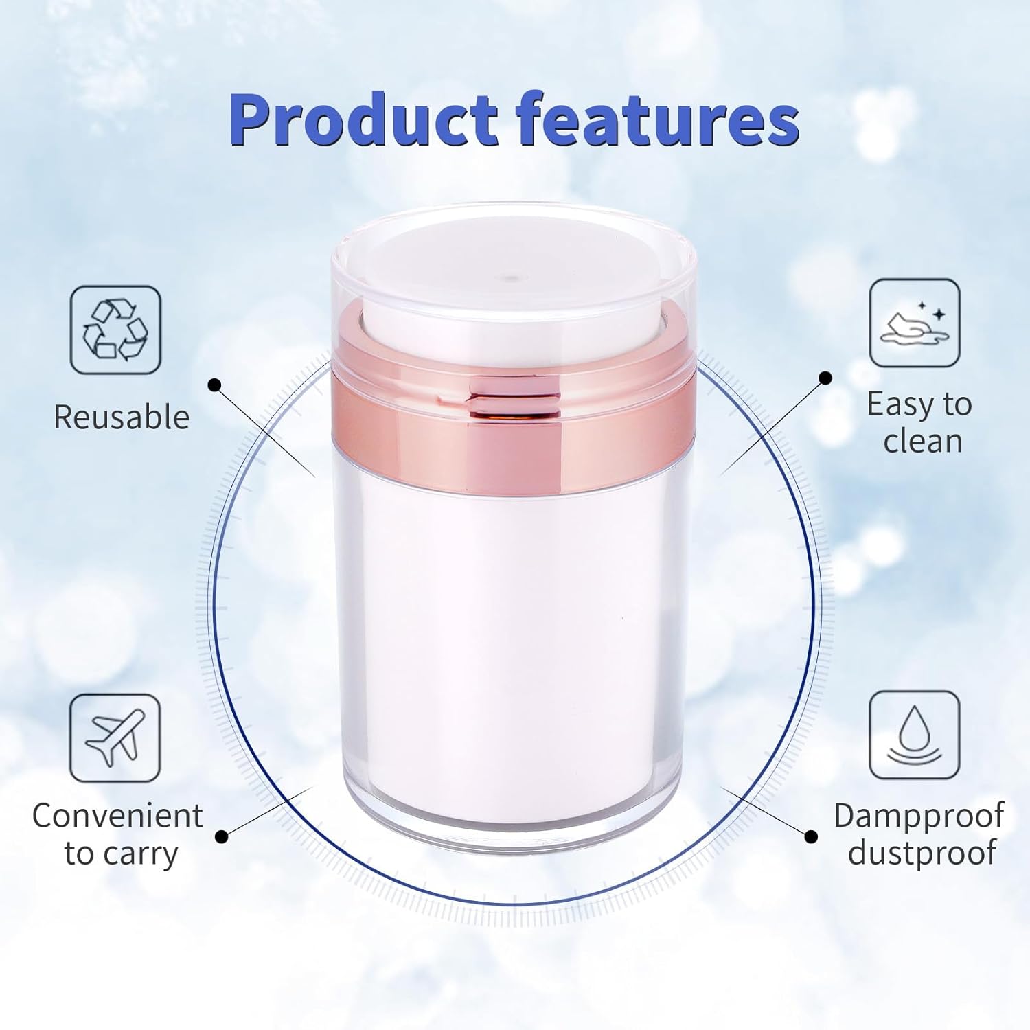 - Airless Pump Design: Vacuum press pump design can use every drop of your products. Don’t have to dip fingers into moisturizer every time .Maintains shelf life preventing skin care products to come in contact with bacteria and pollution.