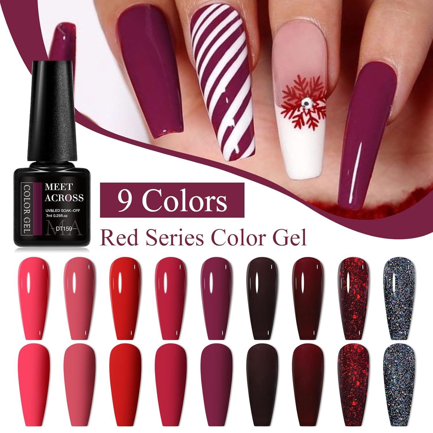 MEET ACROSS 9 Colors Gel Nail Polish + 3PCS Function Gel Nail Polish Kit,Fashion Nail Art Set Design Gifts for Women Manicure Salon (SET1, 12pcs)