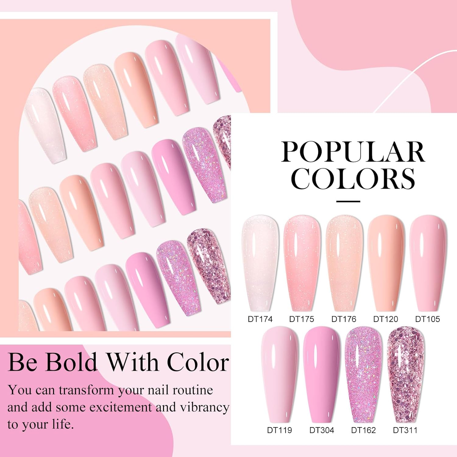 - What You Get: 9 Colors Gel Nail Polish + 3PCS Function Gel (0.25oz/7ml each bottle). 9 colors beautiful shades of popular and trendy colors suitable for all seasons and daily routine life!