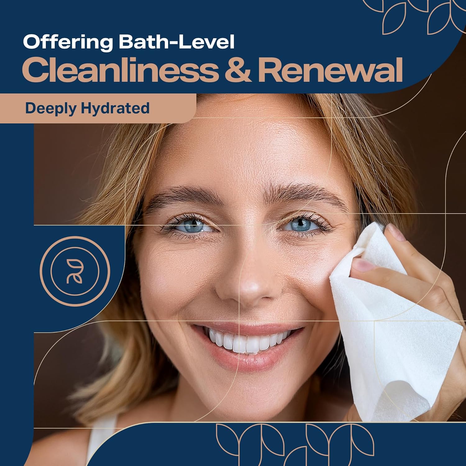 - XL SIZE WITH XL MOISTURE - Our 8â x 12â XL wipes deliver full-body coverage in a single sheet. Packed with moisture and enriched with Aloe Vera and Vitamin E, these body wet wipes for adults cleanse and condition your skin without the need for water, so you can stay comfortable and clean all day.