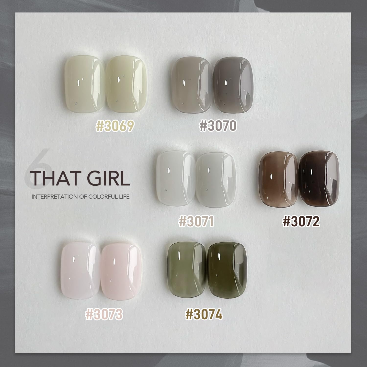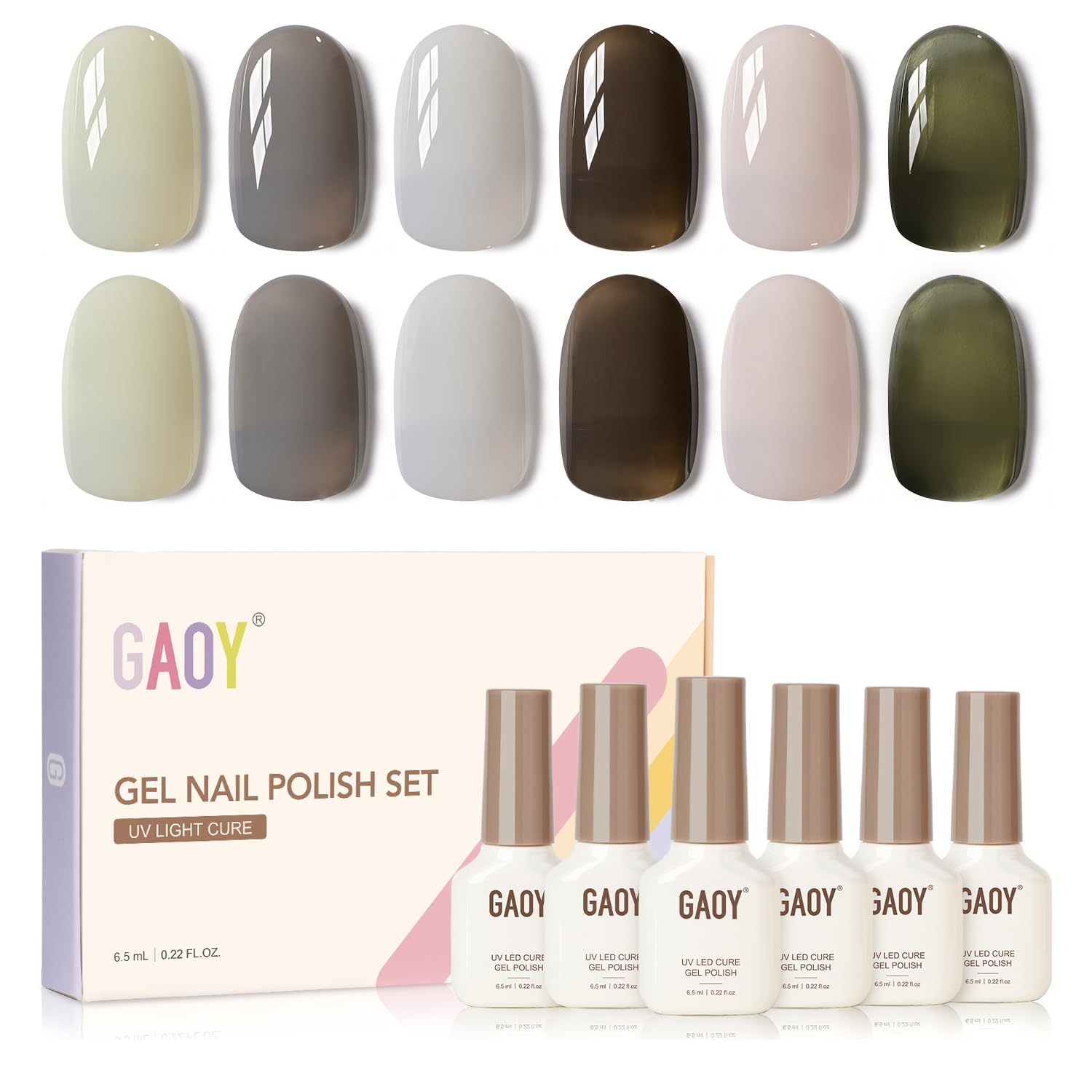 GAOY Milky Black Gel Nail Polish of 6 Creamy Nude, Gray, Green Colors Sweet Salt Style for Salon Gel Manicure and Nail Art DIY at Home