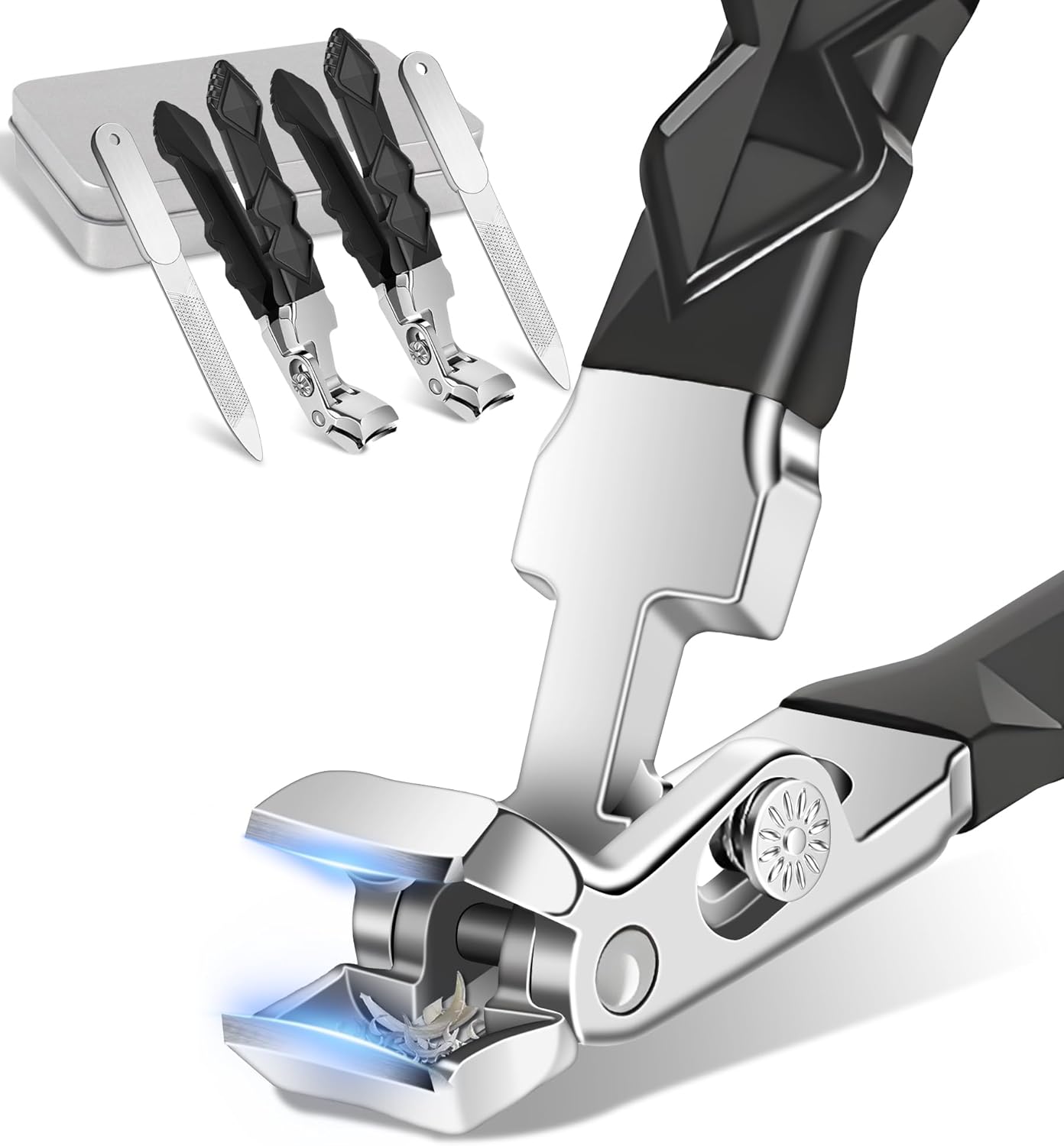 - No-Splash Design & Safety Lock: The no-splash design ensures nail clippings are collected, keeping your home clean; With an easy-to-use safety lock, these toenail clippers stay securely closed when not in use, offering peace of mind and convenience