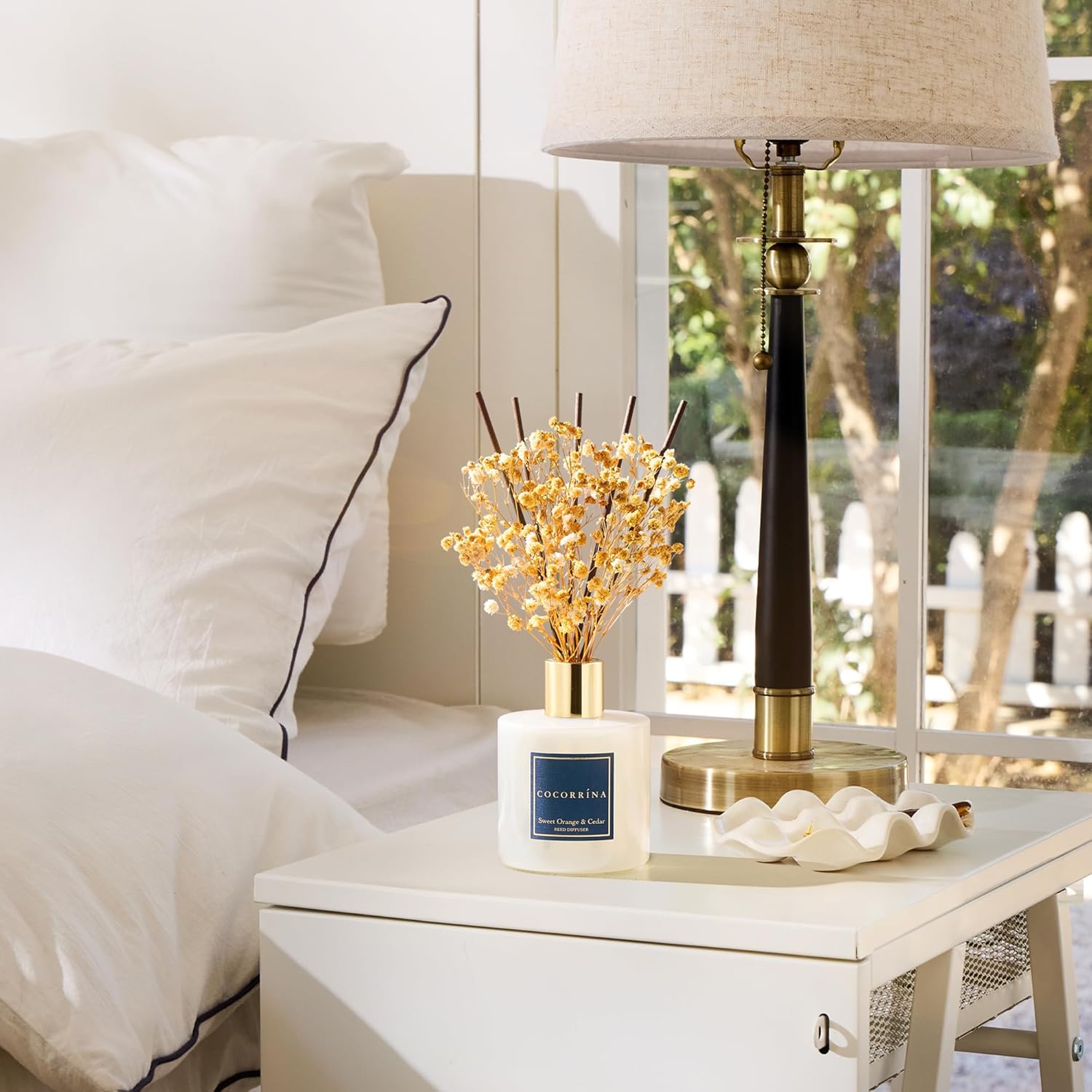 COCORRÍNA Reed Diffuser - Sweet Orange & Cedar 6.7 Fl.oz Reed Diffuser Set with Sticks & Preserved Baby's Breath, Reed Diffuser for Home Bathroom Shelf Decor