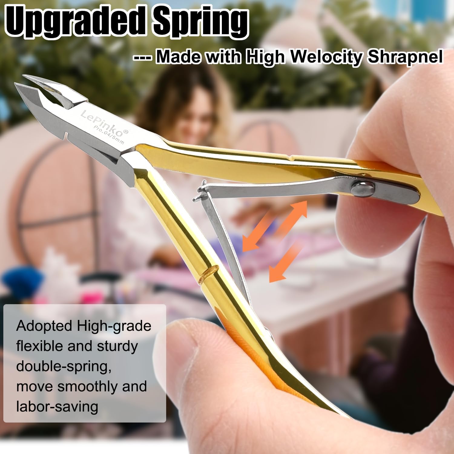 LePinko 4 Packs Upgraded Cuticle Trimmer kit, Sharp Dead Skin Clipper, Labor-Saving Cuticula Remover for Fingernail Toenail, Manicure Pedicure Tool for Women Men, 5mm Jaw, Golden