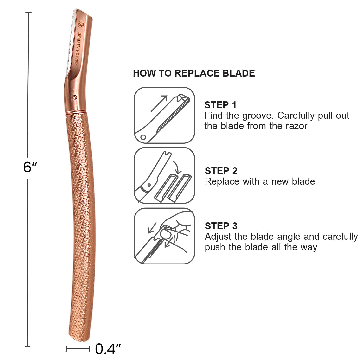 - ✅ 6 REPLACEABLE BLADES FOR LONG-LASTING USE – This face razor comes with six ultra-sharp, stainless steel blades, ensuring precision and durability. Swap blades effortlessly for a fresh and hygienic shave every time.