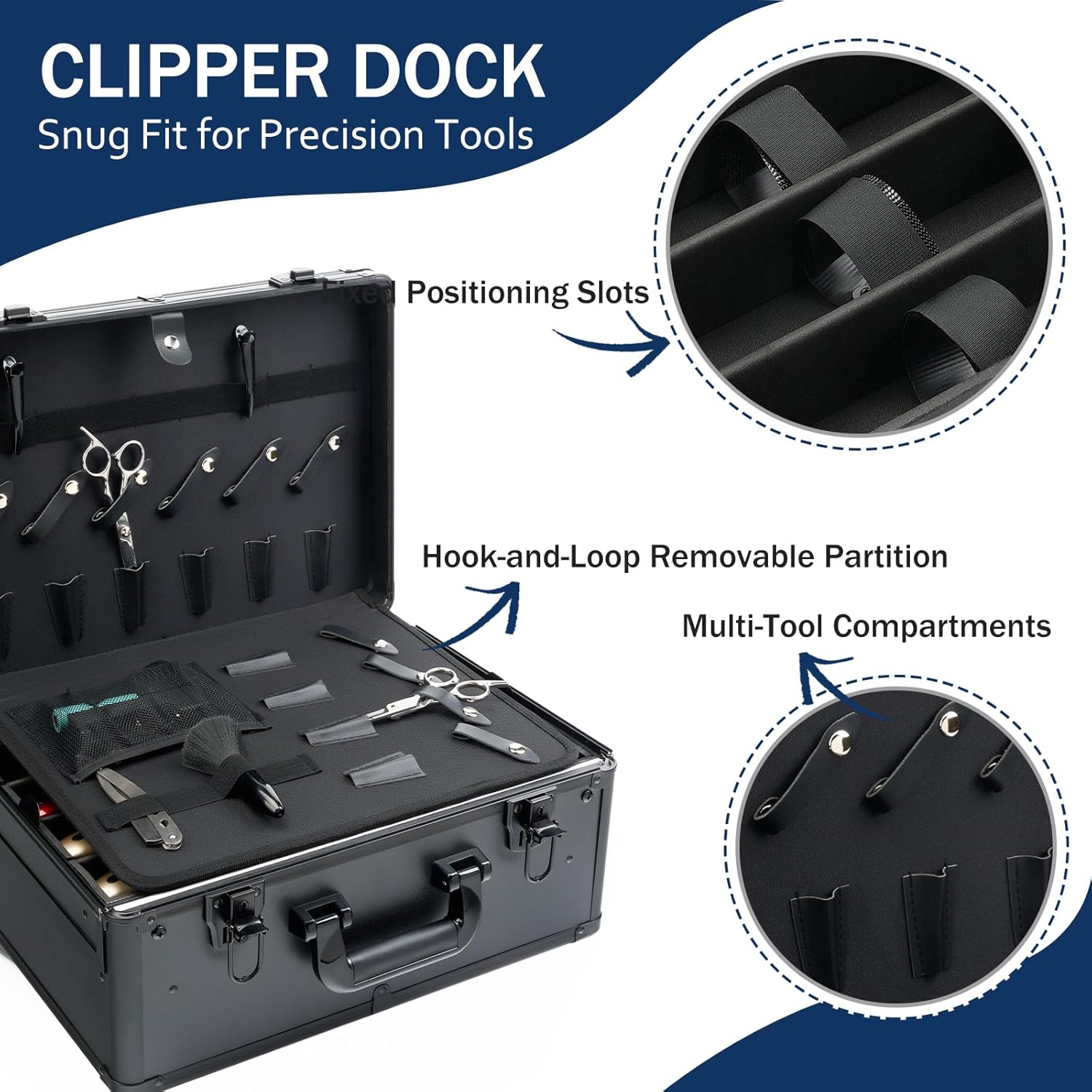 - Professional Barber Case: This premium organizer (17.13"x13.39"x7.68") features 6 clipper slots and 8 shear holders with a keyless quick release latch 50% faster than dual-lock systems for instant one-handed access