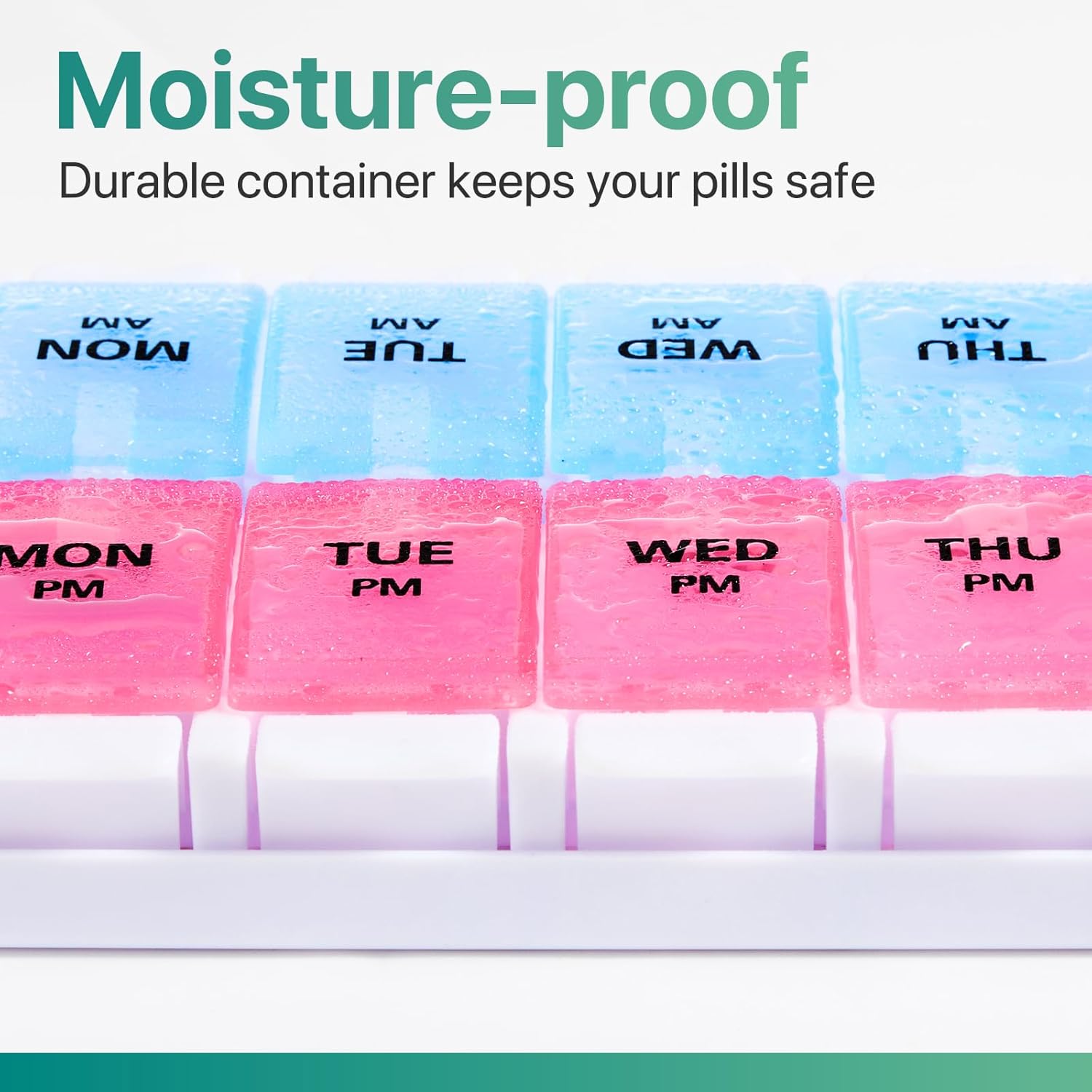 - Long-Lasting Printing: This 7-day AM PM pill organizer features bold marks for the week, making it simple to track your pills without needing to remember. The upgraded printing ensures that these marks remain durable, lasting up to 20,000 uses without showing any wear and tear.