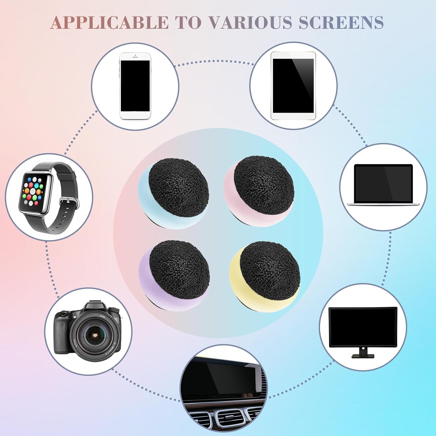 - Sufficient Quantity: there are 4 pieces of screen cleaning balls, including 4 different colors of pink, purple, blue and yellow, enough quantity and multiple colors to meet your daily use needs