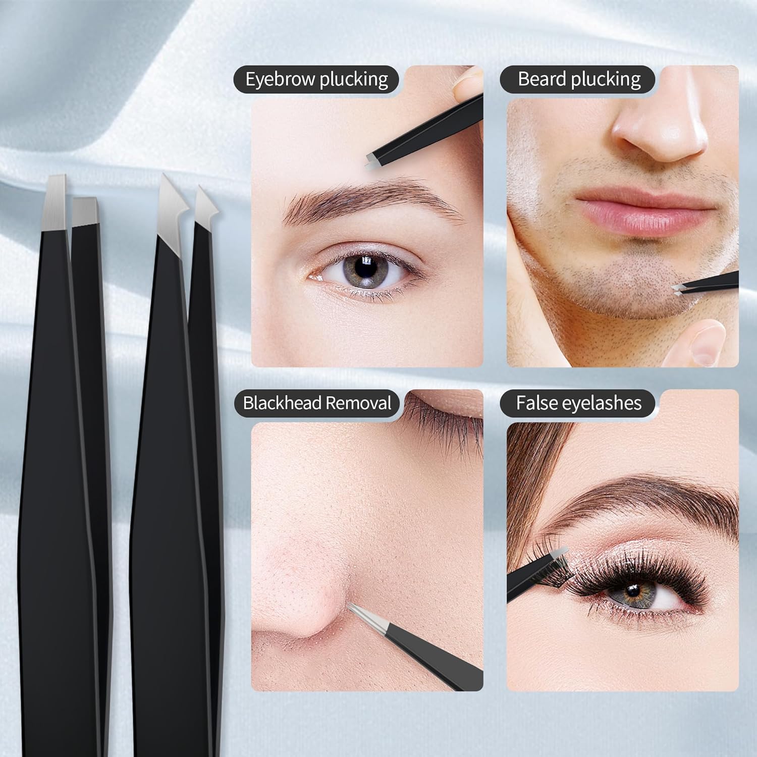 - Stainless Steel Tweezers: stainless steel tweezers, wear-resistant, not easy to oxidize corrosion, with a magnifying mirror, can be used to clip away eyebrows eyelashes whiskers, and white hairs on the face