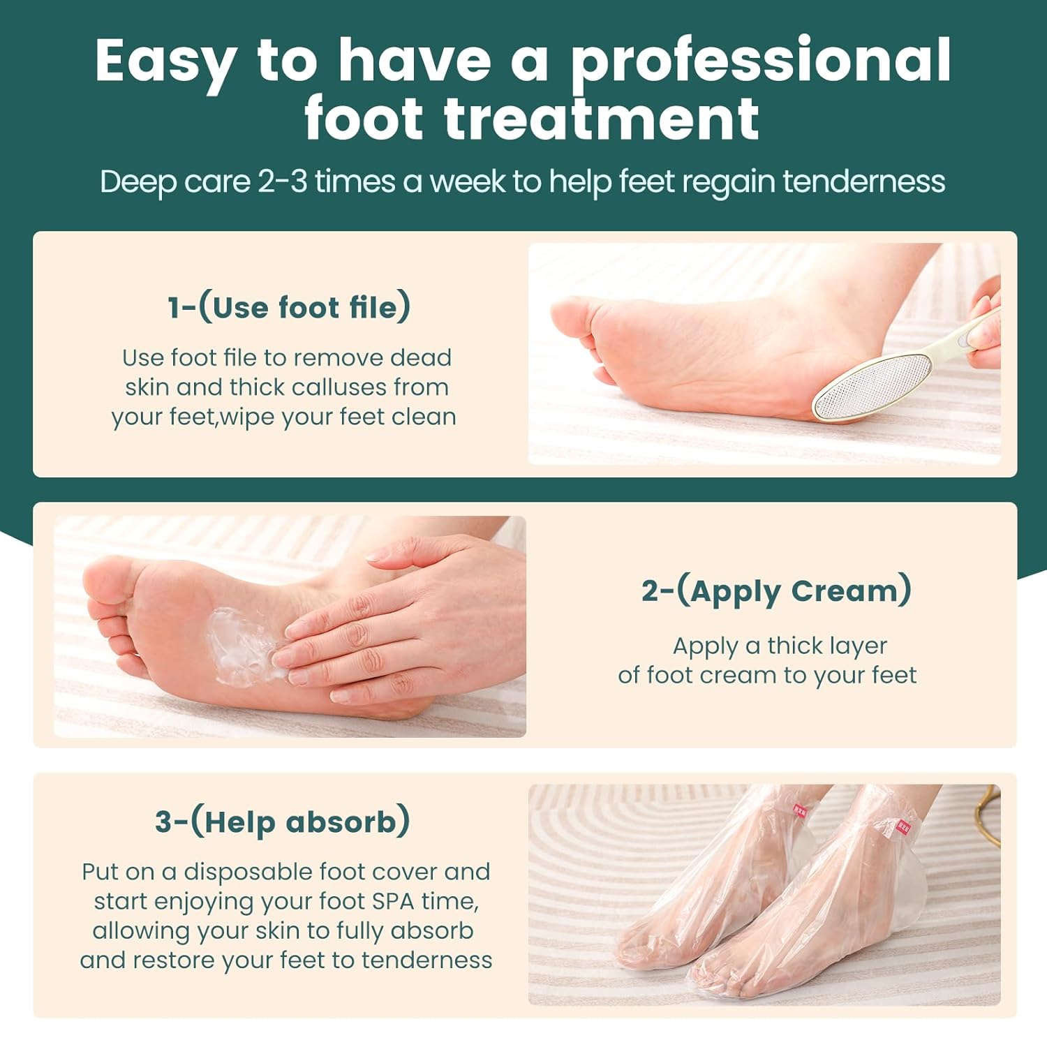 - 【Complete Foot Care Solution】:Our foot cream bonus included: a stainless steel callus remover for feet to physically remove stubborn calluses and corns, allowing the cream to penetrate deeper for faster results. Bonus included: 10 pairs of ultra-thin foot peel mask covers to boost absorption by 98% in a sealed environment, delivering a comprehensive solution for dry, cracked feet.