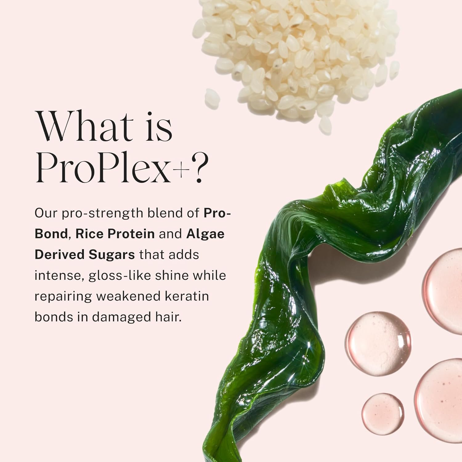 - Innovative ingredients â Formulated with Pro-Plex+, A pro-strength blend of Pro-Bond, Rice Protein and Algae Derived Sugars that adds intense, gloss-like shine while repairing weakened keratin bonds in damaged hair. Color-safe, vegan and cruelty-free.