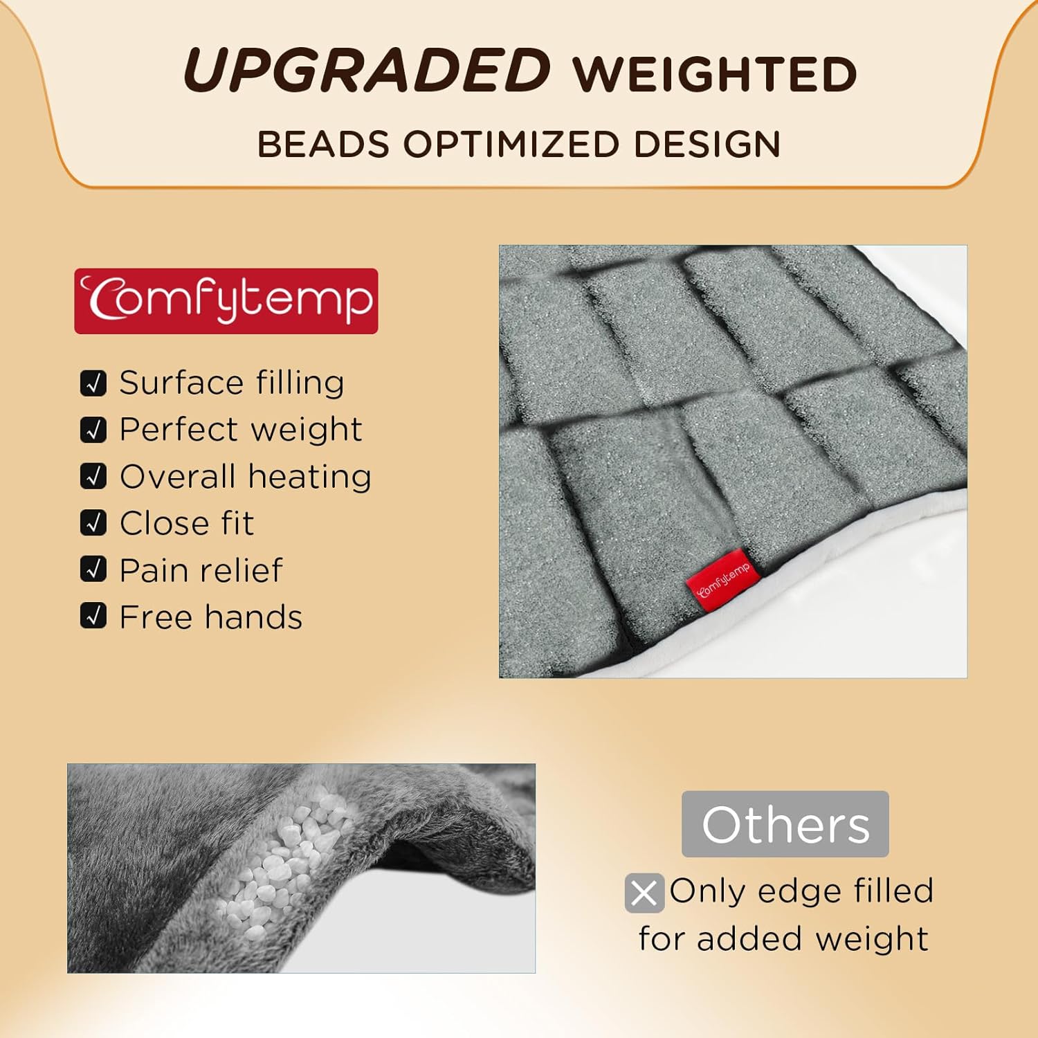 - 2.6lb Weighted Heating Pad: Filled evenly with micro-glass beads, our 19"x 23" large heating pad for neck and shoulders and back is designed for better fit around your neck and shoulders, providing a comforting sensation akin to being hugged. It effectively relieves neck, shoulder, and upper back pain, eases muscle tension and soreness. Additionally, it can be applied flexibly to the abdomen and waist to help relieve period cramps. An ideal gift for mom dad.