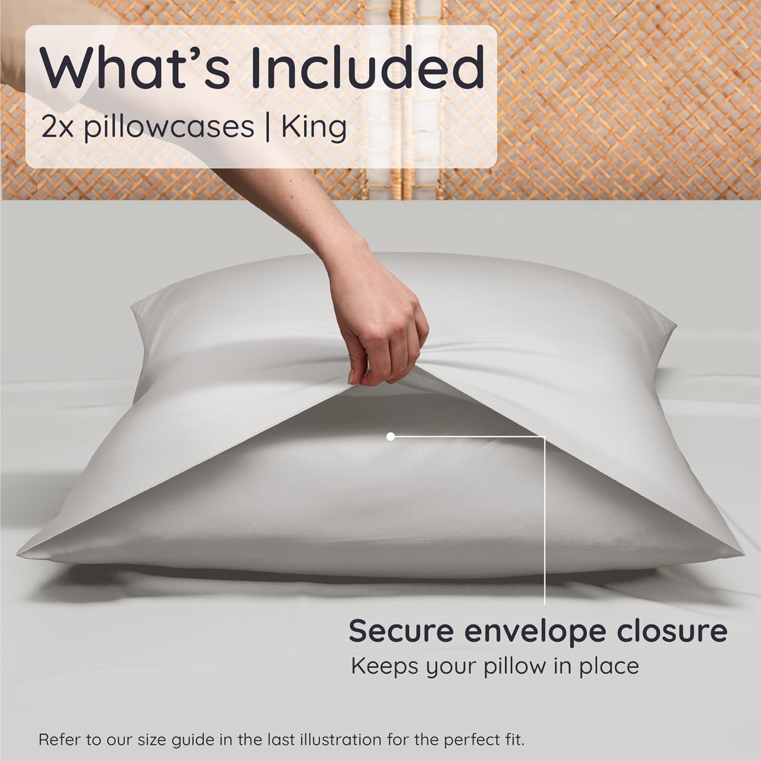 Bambaw 100% Viscose Derived from Bamboo Pillowcase King Size – Set of 2 Cooling Pillow Cases for Hair Protection with Envelope Closure, Breathable & Anti Acne Pillowcase (Moonlight Gray)