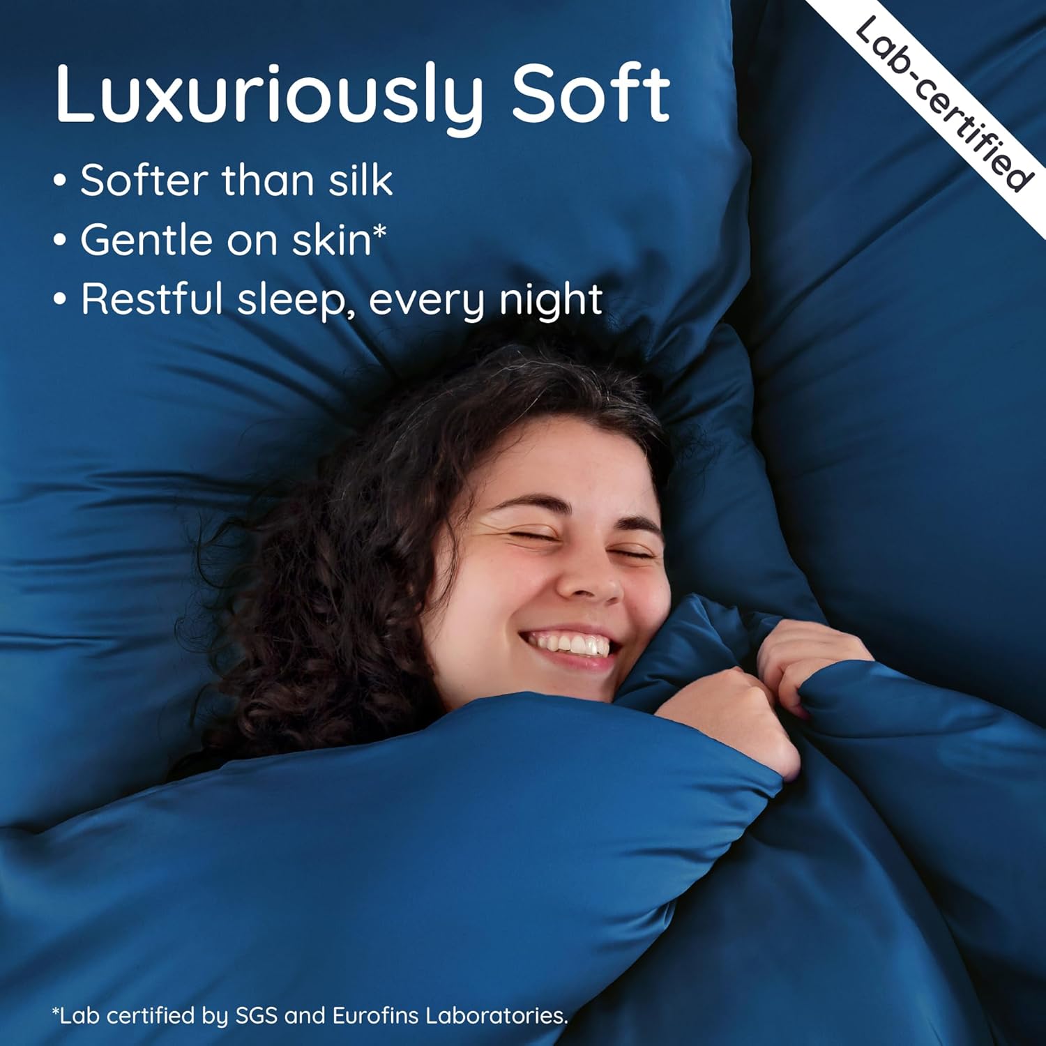 - Feel the Difference: Buttery soft and smoother than silk, these navy pillowcases for acne transform your bed into a haven of comfort. The fibers are designed to create a clean and cozy sleep environment for truly rejuvenating rest.