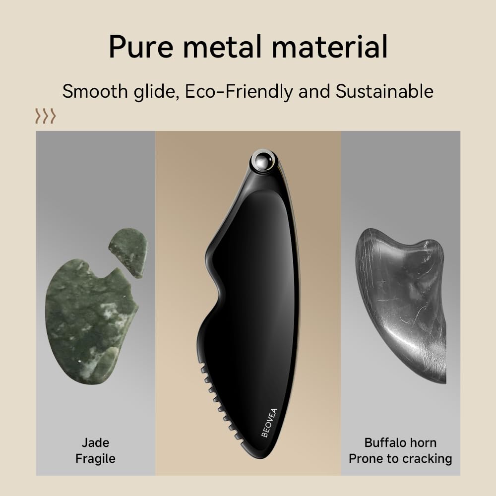 - Premium Quality for All Skin Types – Crafted from high-quality metal, this gua sha facial tool offers durability and a luxurious feel, suitable for all skin types. Its smooth, ergonomic design makes it ideal for a gentle facial massage or a full-body relaxation session.