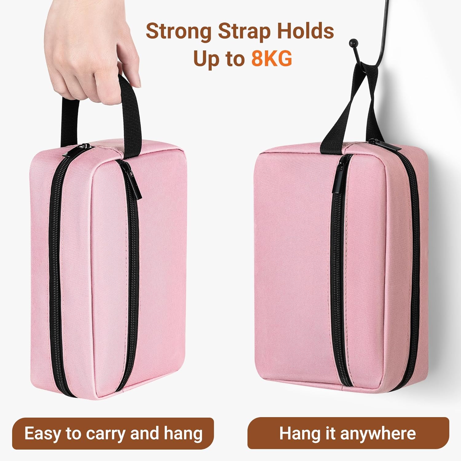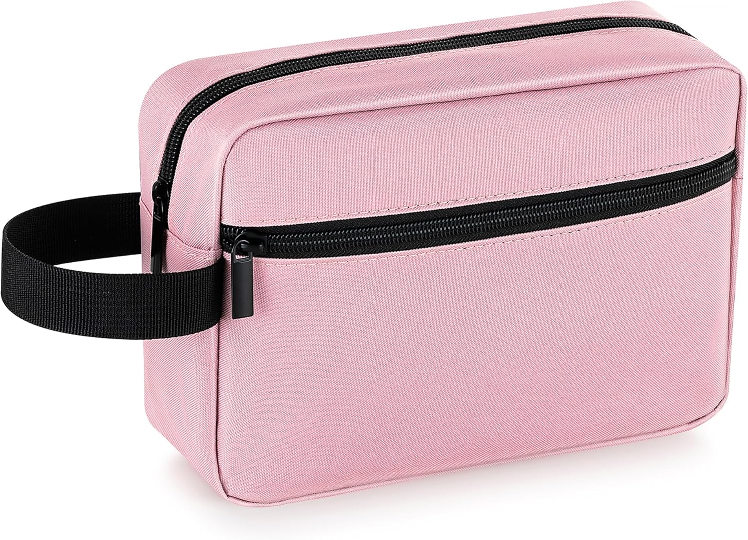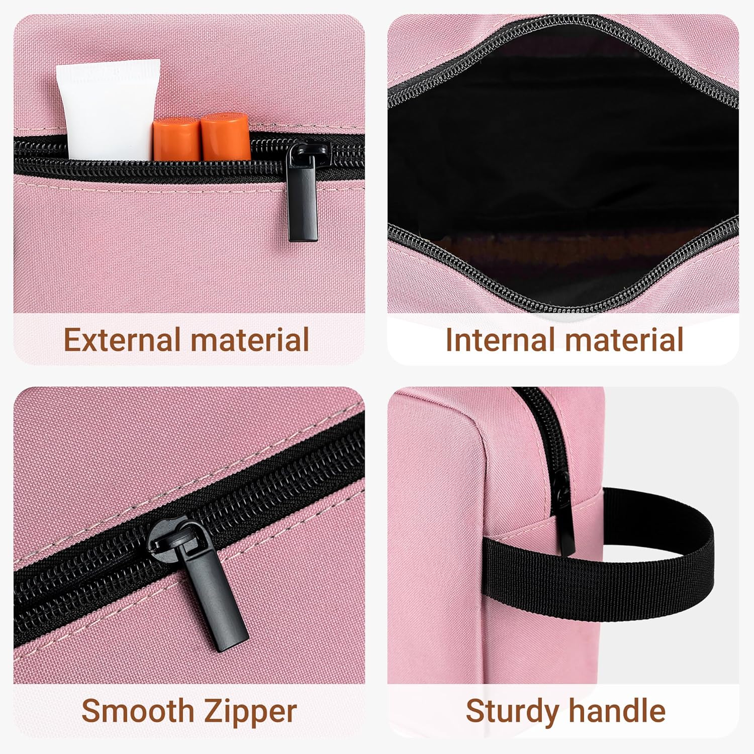 Elviros Travel Toiletry Bag for Women and Men, Lightweight Makeup Bag Hanging Dopp Kit with Compartment Cosmetic Organizer Small Tool Bag Travel Essentials, Pink