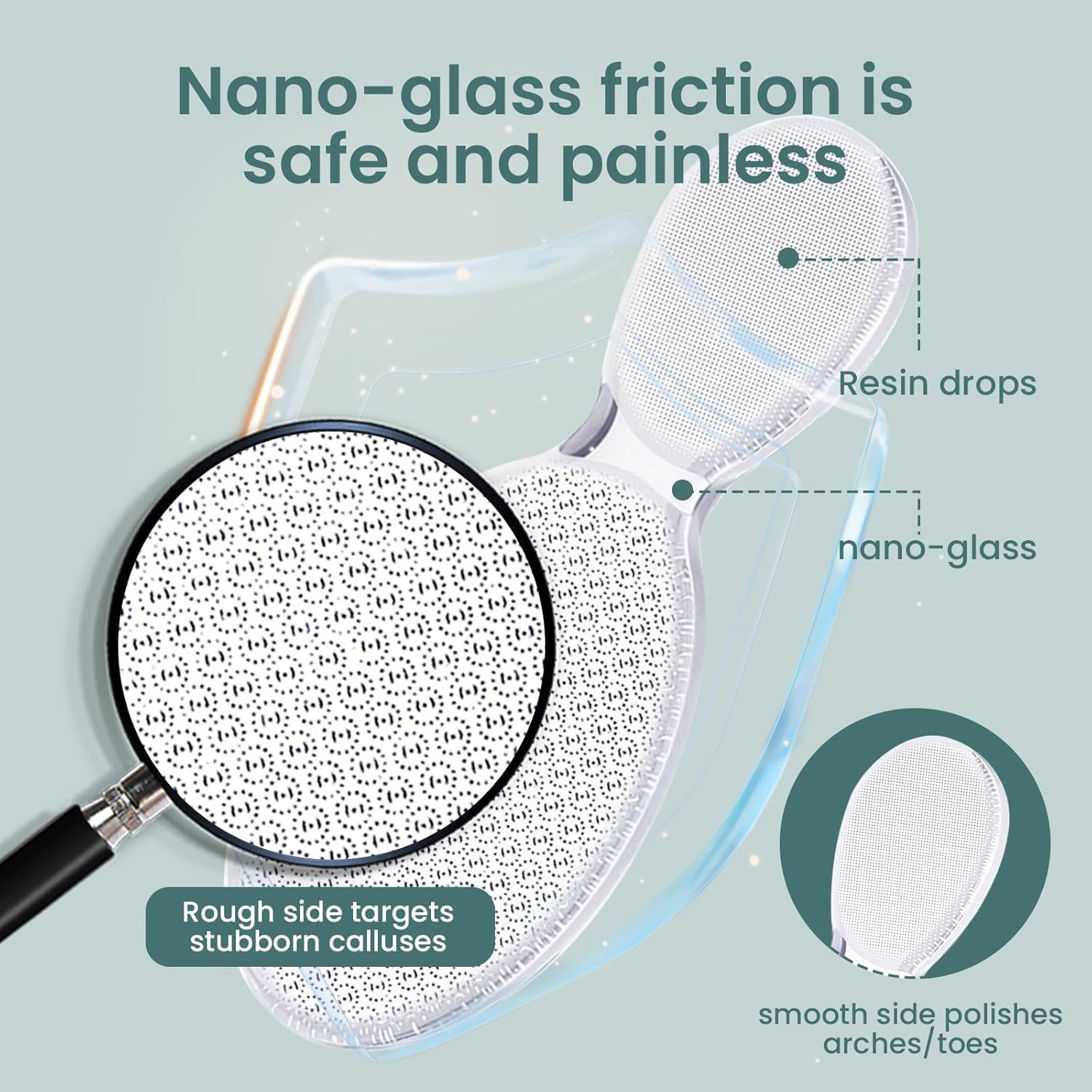 - Hygienic Durable Design: This seamless glass foot file callus remover rinses clean in seconds. Nano-glass stays sharp for yearsāno replacement heads like electric heel scrapers. Compact and nonporous, itās perfect for travel or gym bags