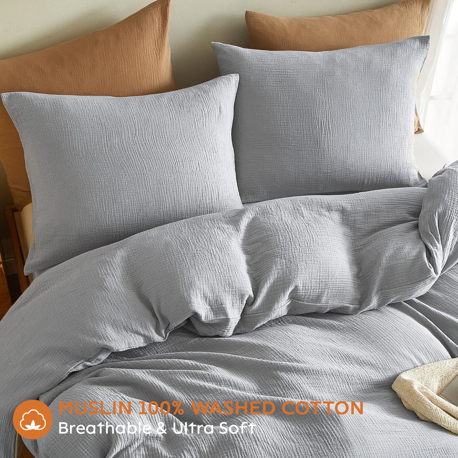 SE SOFTEXLY Muslin Pillowcases Queen Size 100% Cotton, 2 Pack Linen Like Pillow Shams with Envelope Closure, Ultral Soft and Breathable Pillow Case Covers, Light Grey, 20" X 30", No Filling