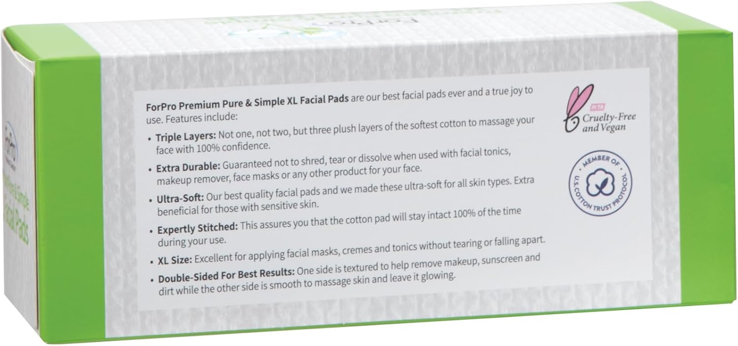ForPro Premium Pure & Simple XL Facial Pads, Triple Layered Ultra Soft Disposable Makeup Remover Pads, 100% Vegan & Cruelty-Free, 60-Count