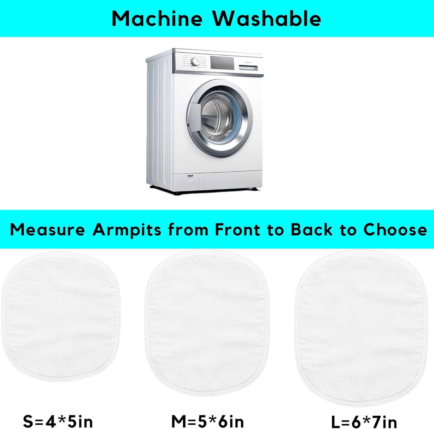 - 3-Layer Design & Machine Washable: bamboo & cotton blended gauze layer on front which is super absorbent and skin friendly, absorbent layer in middle, waterproof breathable membrane on back to attach to clothes. Bye-bye armpit sweat rings. This reusable armpit sweat pads save you from tons of disposable ones and all those unrecyclable wastes.