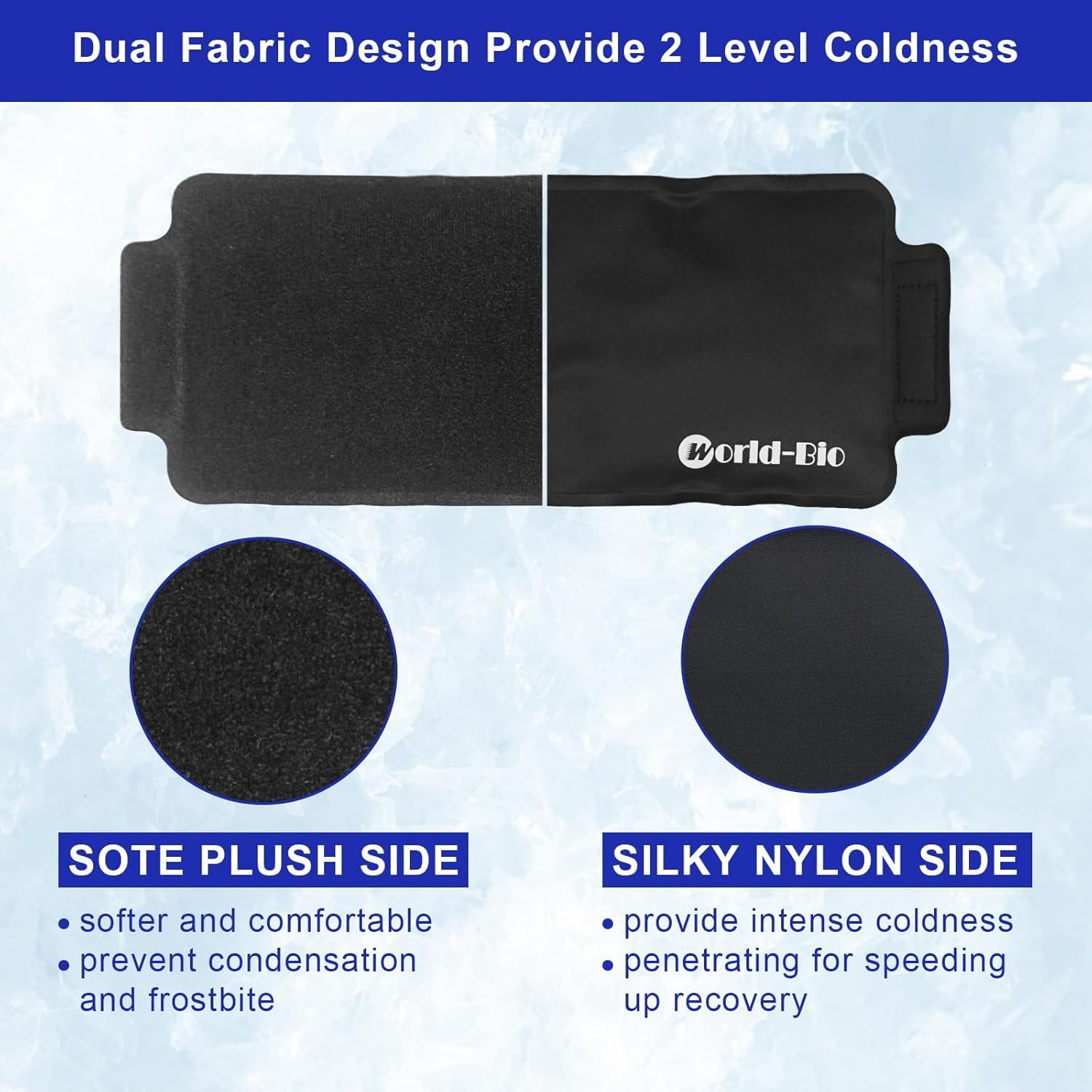 - Double-Sided Material Design - This adjustable wrap-around gel ice pack features a plush fabric side for gentle cold treatment and a nylon side for more intense cold therapy. Skin-friendly and puncture-resistant, this medical cold packs for injuries reusable soft is a must-have addition to your home first aid kit.