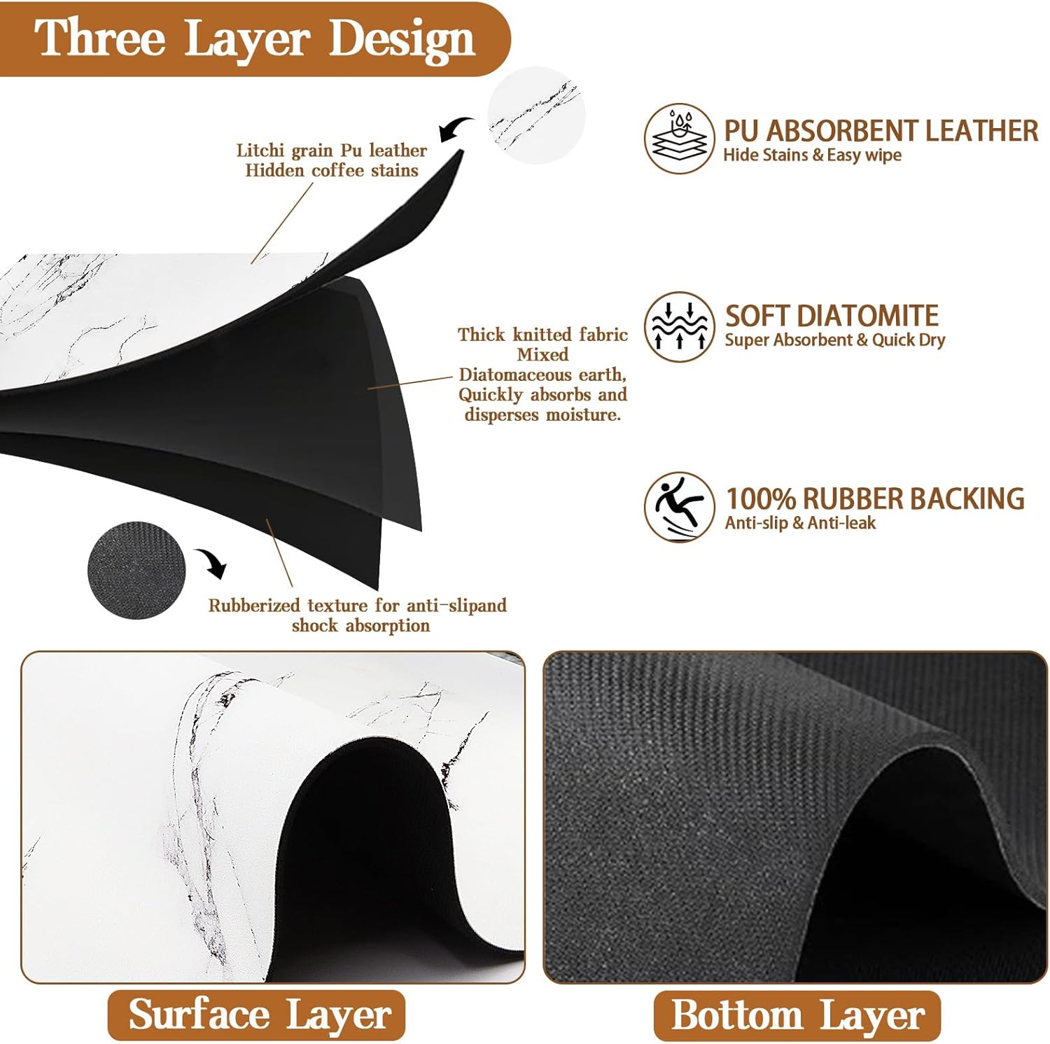 - 【Quick Absorption】HCYDTOPU kitchen drying mat white is designed with advanced absorbent materials that quickly soak up water, keeping your countertops dry and clean. The dish drying mats for kitchen counter are thick enough to better protect countertops, tableware, and glassware from damage. White marble pattern are perfect for kitchen counters and bathroom countertops.