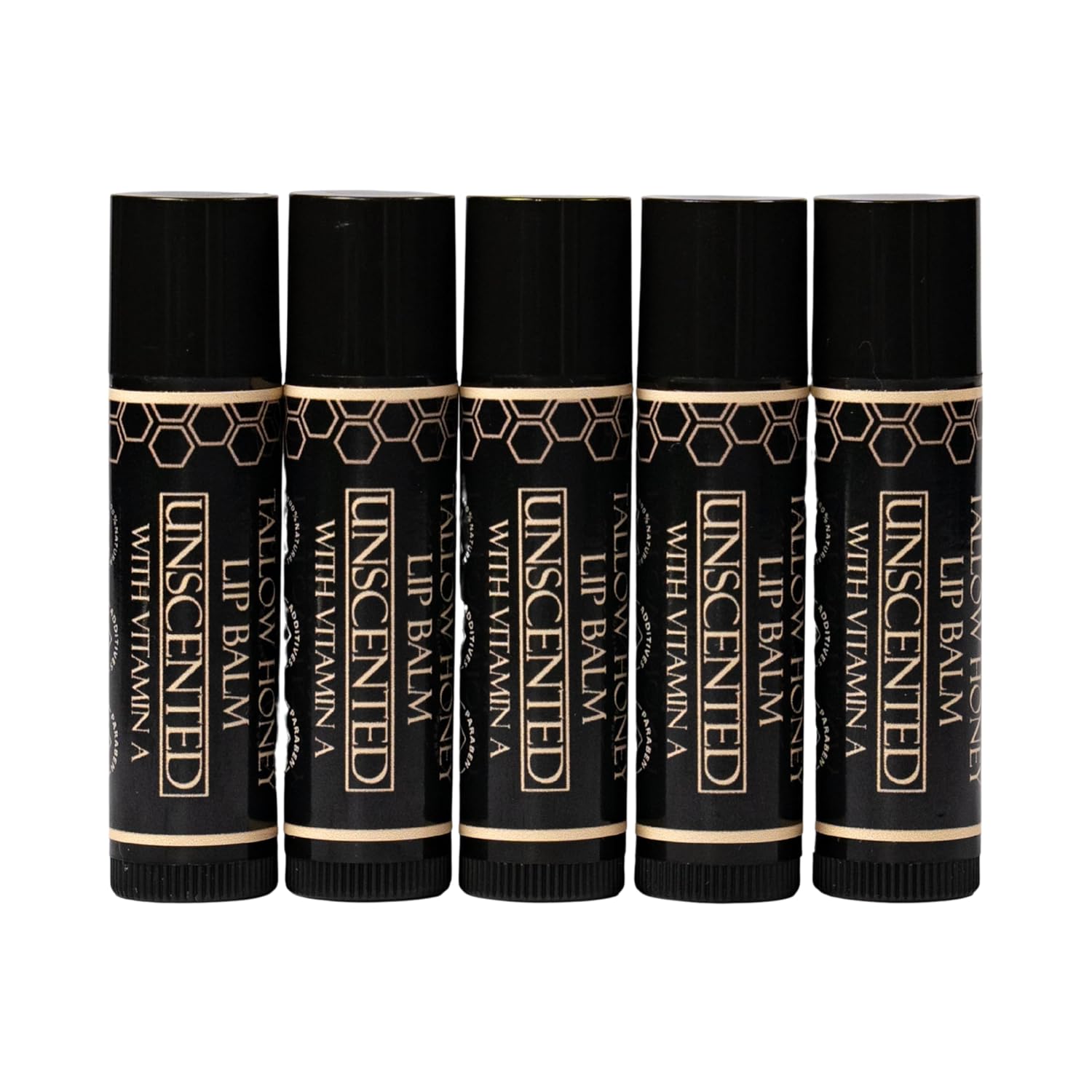 Tallow Lip Balm (5 Pack) - Hydrating With Organic Italian Olive Oil, Pure Grass Fed Tallow, and Beeswax - Long Lasting Lip Therapy (Unscented)