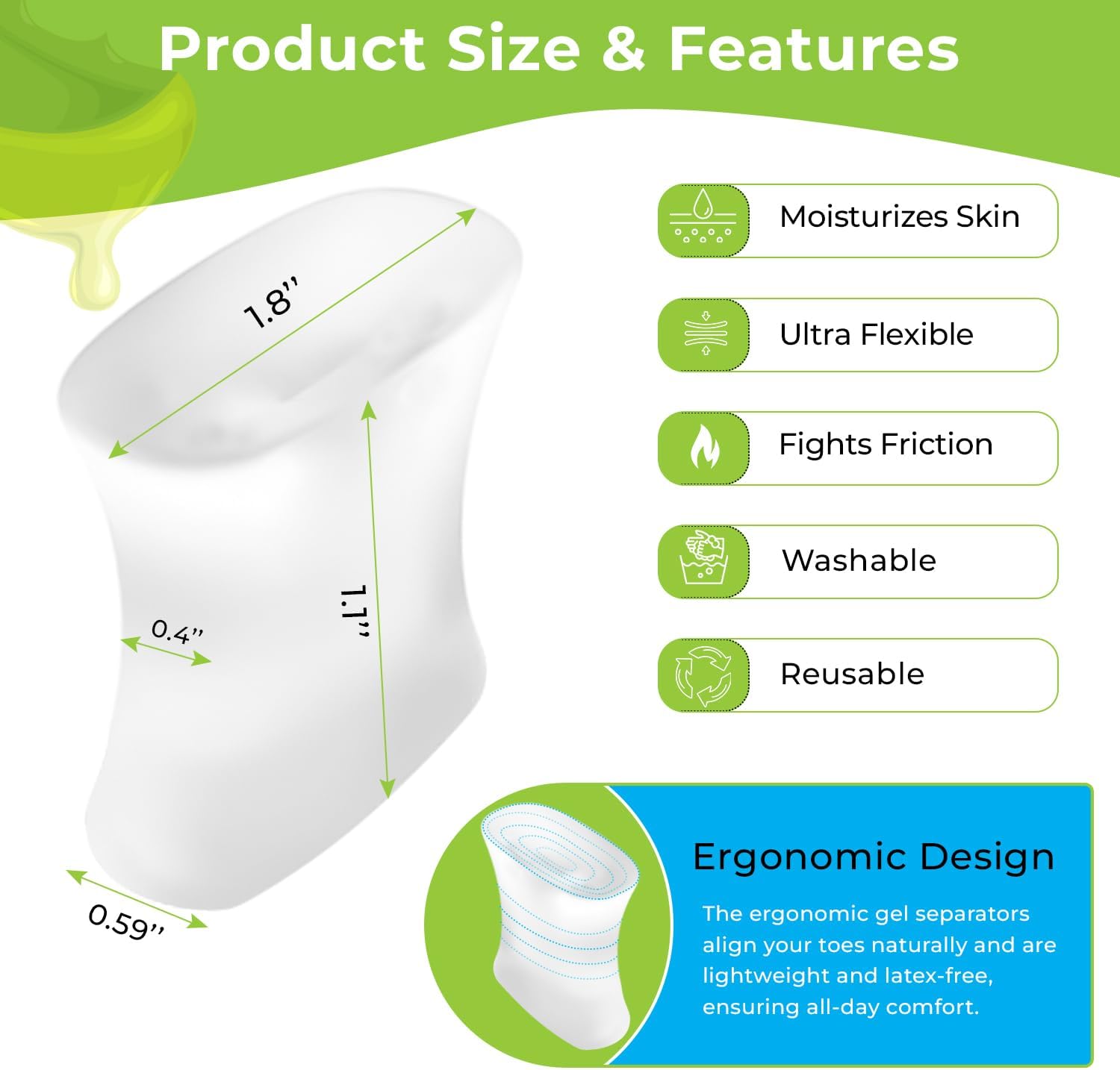 - COMFORT DESIGN: Soft, flexible gel material provides gentle separation while remaining comfortable for extended wear