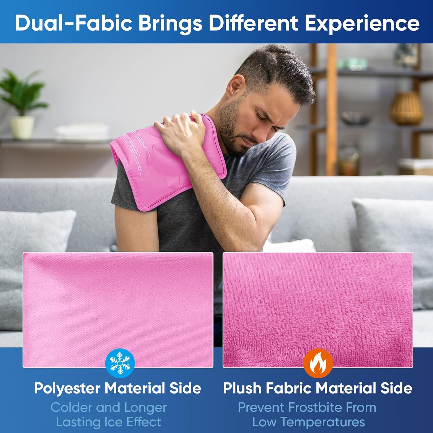 APEXUP Gel Ice Packs for Injuries Reusable, Flexible Double Sided Cold Packs for Injuries, Ice Pack for Knee, Shoulder, Back, Hip, Leg, Arm (Pink, L, 2PK)