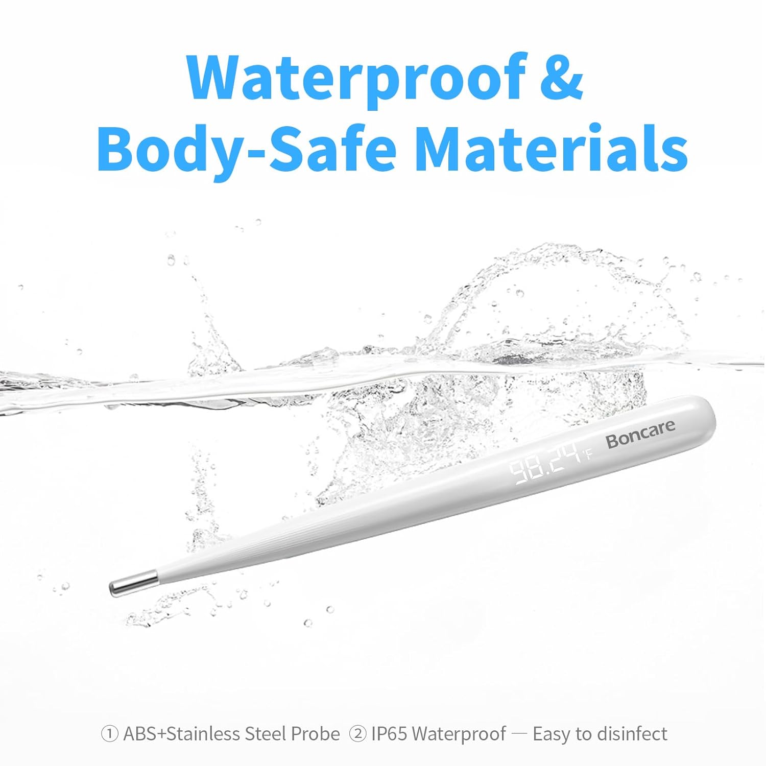 - Readable DisplayďźEquipped with an LED backlit display, the Boncare thermometer allows for easy temperature reading. The large LCD screen offers great clarity, ensuring you can clearly see the temperature both day and night.