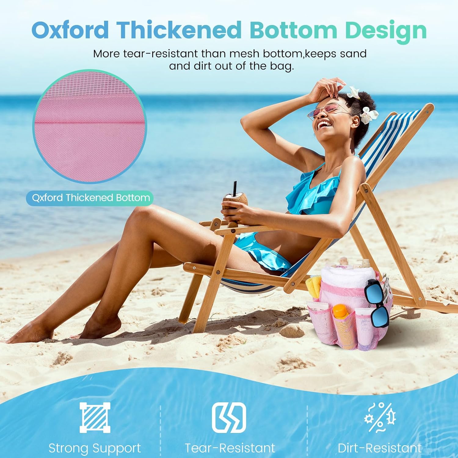 - Reinforced Oxford Base, Stronger SupportďźFor the most essential part of this beach bag, we utilize highly strong and durable Oxford fabric for the bag base, delivering higher weight capacity, wear and tear resistance. The base supports travel essentials firmly and keeps them away from sand.