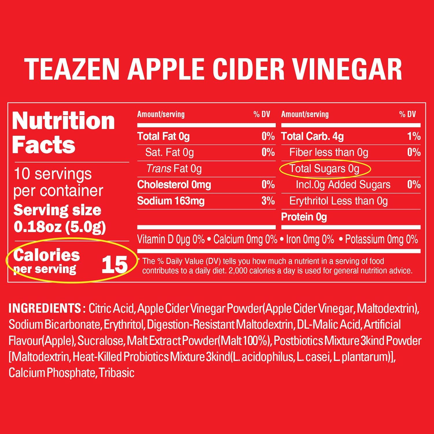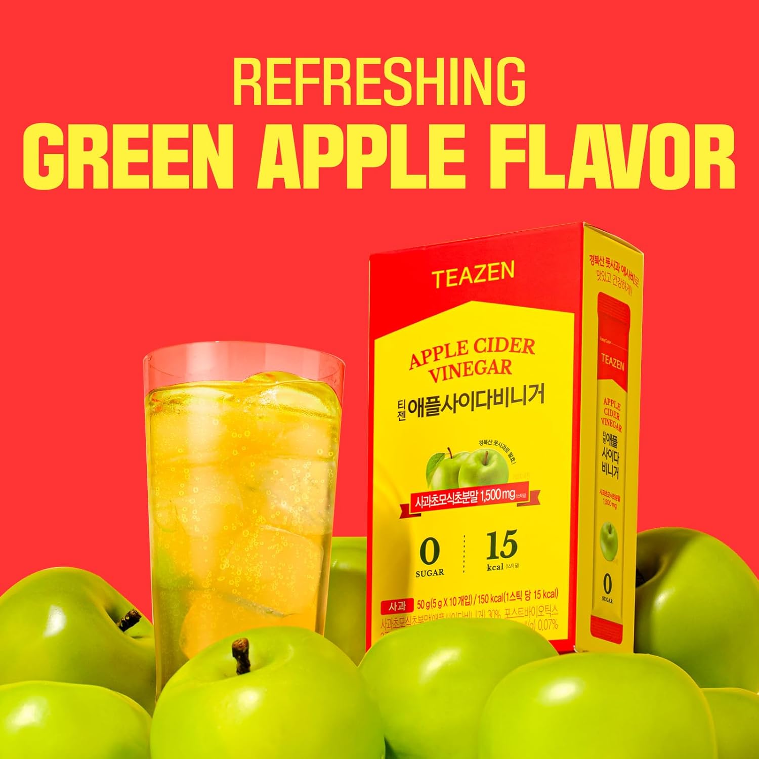 TEAZEN Apple Cider Vinegar Drink Powder Stick – On-the-Go Wellness with 1500mg ACV, Sugar-Free, Postbiotics, 10 Sticks | Supports Digestion & Metabolism