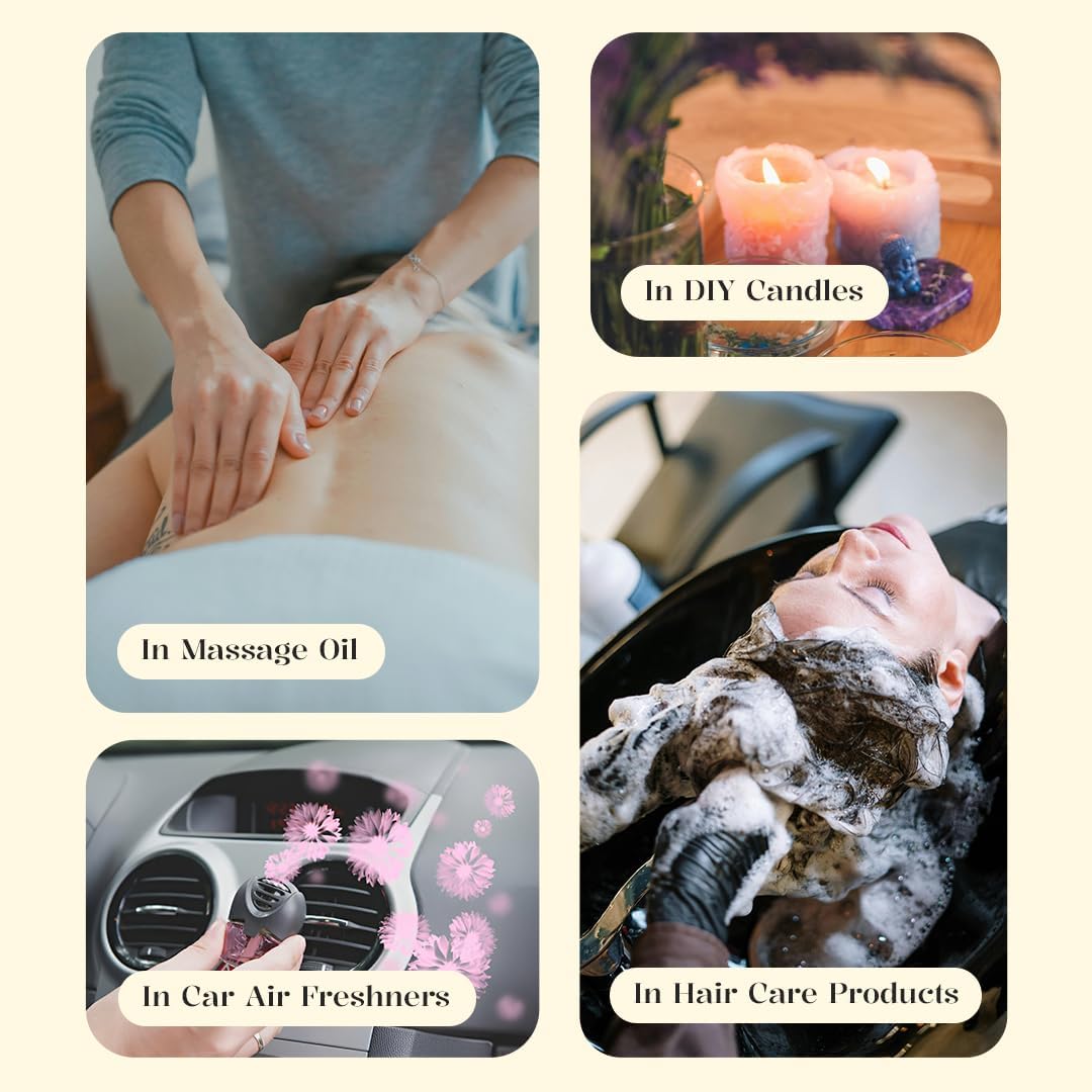 - Bathing Luxury: Elevate your bathing experience by adding a few drops to your bathwater. The soothing aroma transforms your bath into a spa-like retreat, providing a calming and rejuvenating experience. Home Fragrance: Apply a few drops to potpourri, reed diffusers, or sachets to bring the calming scent of chamomile into every corner of your home, creating a peaceful and inviting environment. Sleep Aid: Use it in your nighttime routine to promote restful sleep. A few drops on your pillow or added to a diffuser can help you unwind and enjoy a more restful night's sleep.