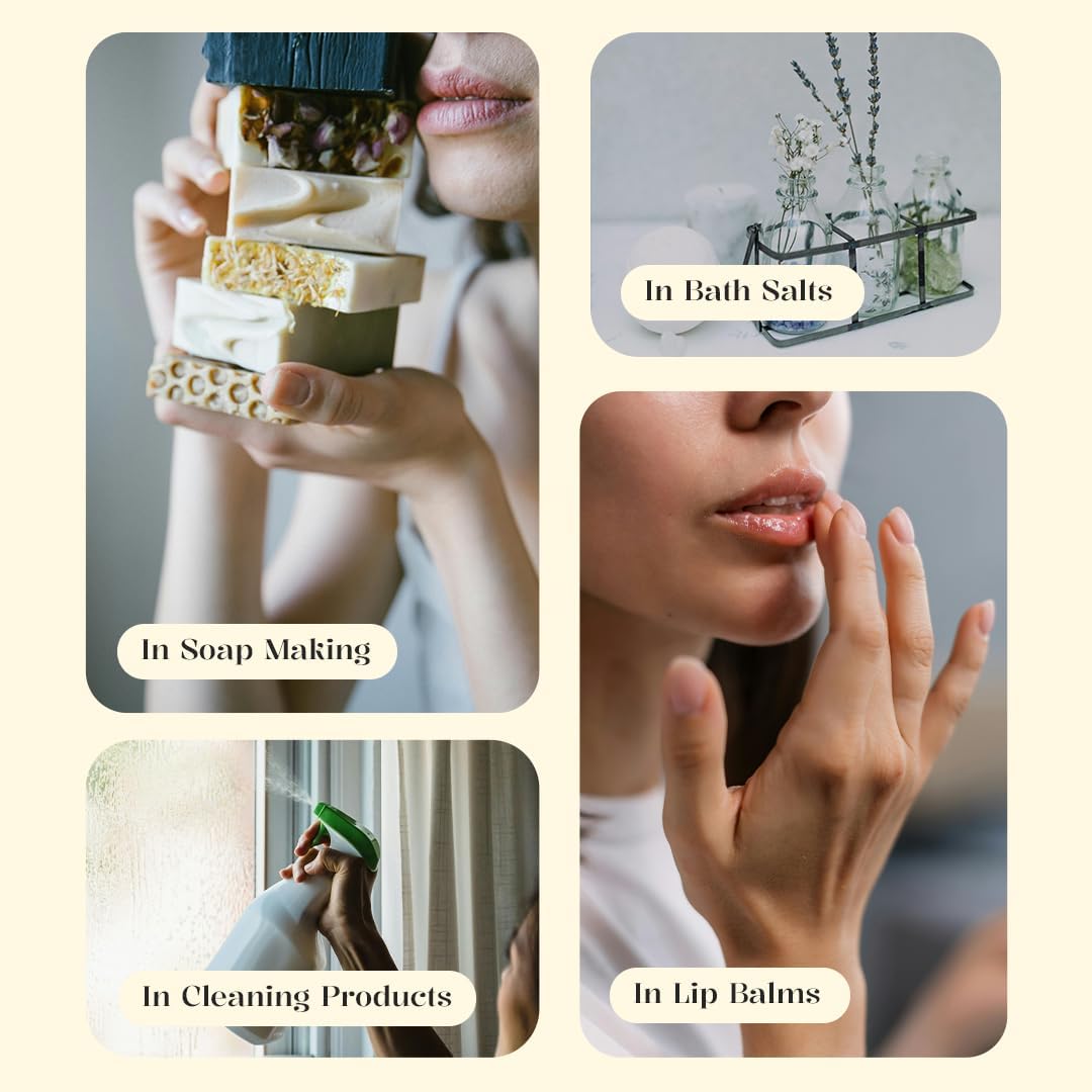 - Possible Blends with Enhanced Essentials- 1.Chamomile and Vanilla essential oil:Perfect for evening aromatherapy or a calming bath. 2.Chamomile and Rosemary: Combination with Rosemary essential oil is well known for hair growth 3.Chamomile and Eucalyptus oil:Ideal for diffusing in the morning or during a wellness routine. 4.Chamomile and Myrrh essential oil:Perfect for meditation and creating a tranquil environment. 5.Chamomile and Jasmine essential oil:Great for evening relaxation or a candle or soap making.