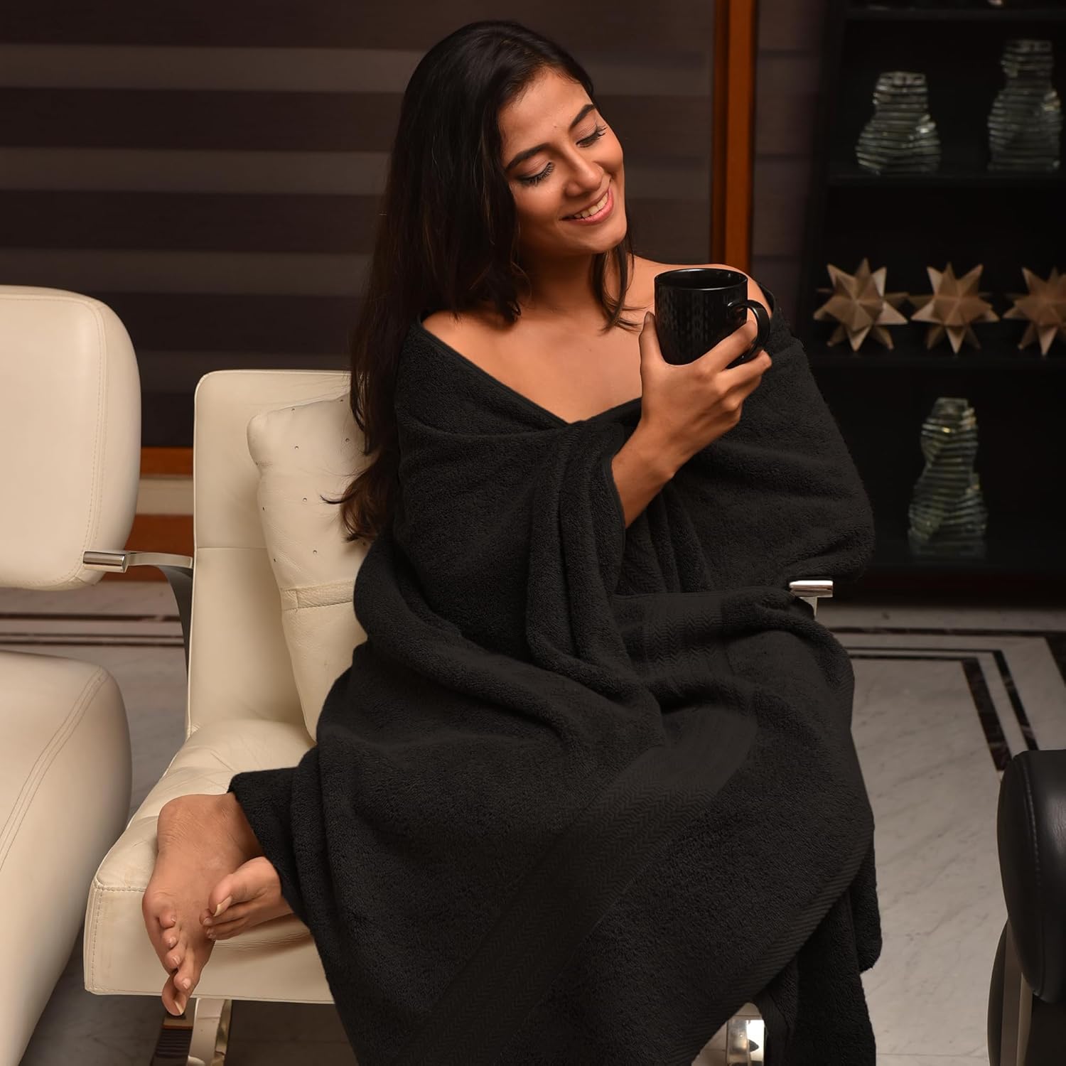 Oversized Bath Sheet 35 x 75 Pack of 2 | 450 GSM Quick Dry and Highly Absorbent | 100% Cotton Terry Towels for Bathroom - Perfect for Shower - Pool and Spa - Luxury Soft Towels - Charcoal Grey