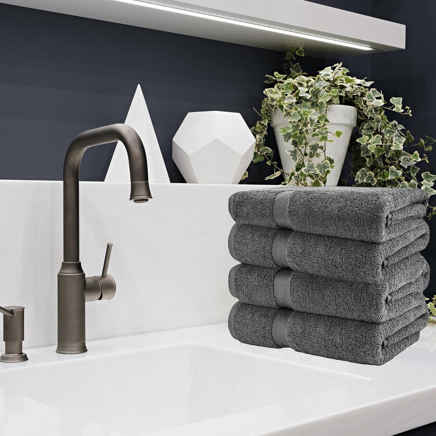 HERCULEAN Bath Sheet 30 x 60 Pack of 4 | 450 GSM Quick Dry and Highly Absorbent | 100% Cotton Terry Towels for Bathroom - Perfect for Shower - Pool and Spa - Luxury Soft Towels - Light Grey